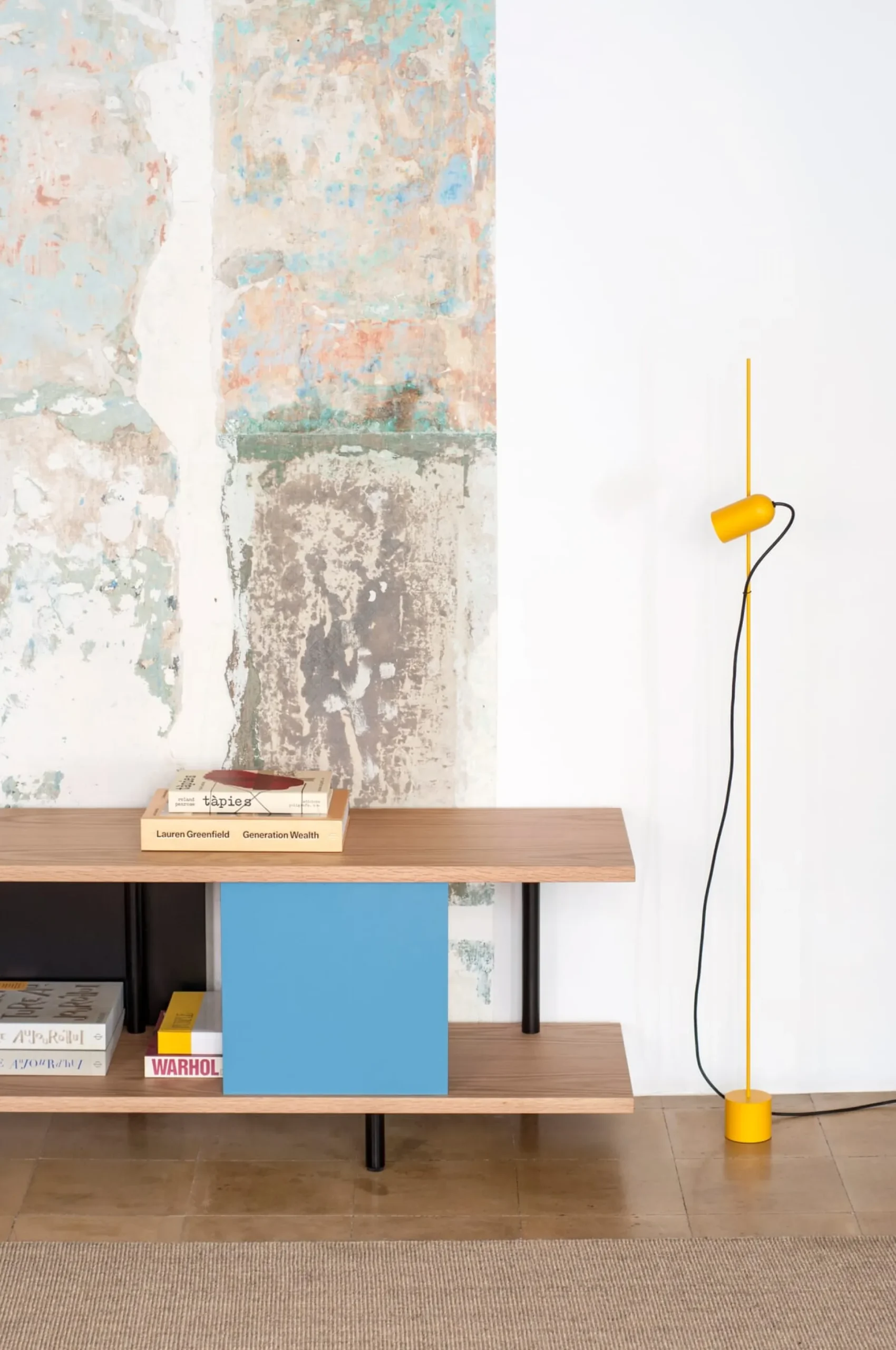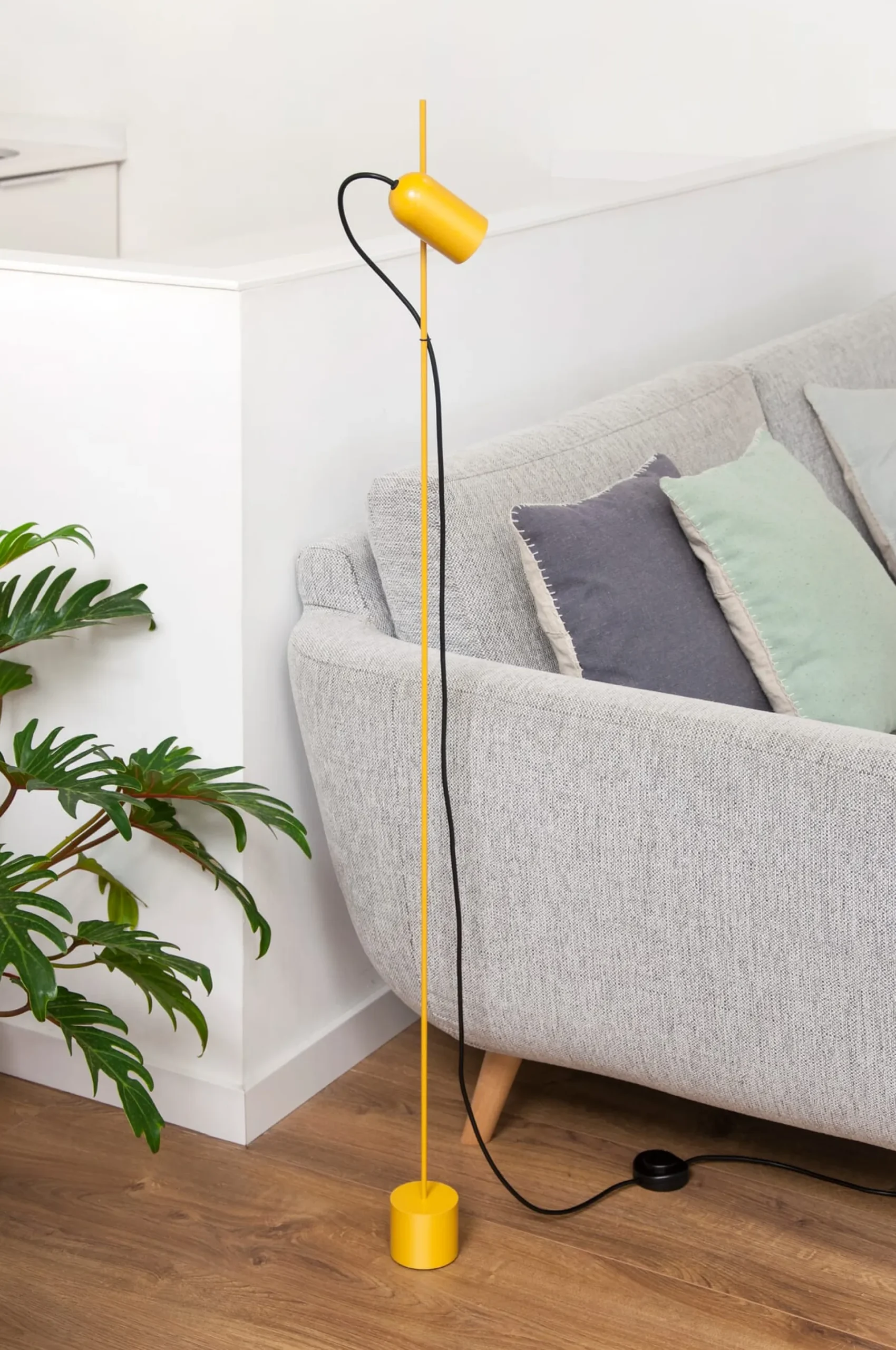 Der Name dieser Leuchten-Serie ist eine Anlehnung an ihre ursprüngliche Bestimmung: Fa ist der spanische Begriff für die Musiknote F – die filigranen Leuchten wurden zum Ausleuchten von Kunstwerken aus der Malerei im Rahmen einer Ausstellung im Opernhaus von Barcelona entwickelt. Und den Bezug zur Musik sieht man auch an ihrer Form: Der feine Stab aus Stahl erinnert im Zusammenspiel mit dem über einen Magneten an ihm befestigten und verschiebbaren Strahler an eine Musiknote. Die massive Basis sorgt für die nötige Standfestigkeit, das 3,20 m lange Kabel für Bewegungsfreiheit – des Strahlers am Stab und der Stehleuchte im Raum. Die Leuchte ist dimmbar.