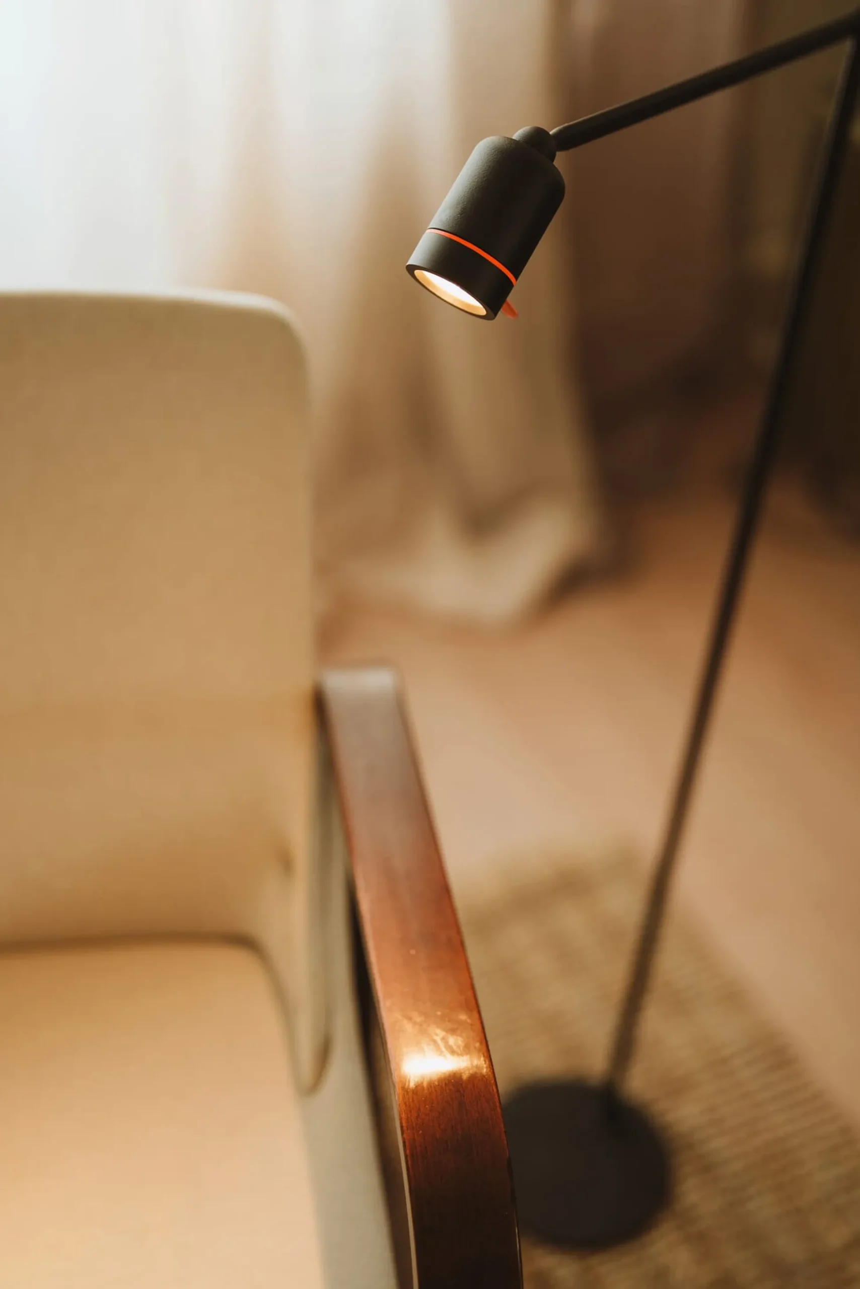Die Leuchte wird über das mitgelieferte USB-C-Kabel aufgeladen, das magnetisch am Spot anschließt und geschickt in der im Fuß integrierten Führung verschwindet. Stehleuchte ONE kann daher ortsunabhängig sowohl mit als auch ohne Kabel genutzt werden. Der Spot wiederum wird bei Bedarf einfach ab- und dorthin mitgenommen, wo er gebraucht wird: zum Suchen heruntergefallener Gegenstände unter dem Sofa oder an anderer Stelle, wo er an die mitgelieferte separate Wandhalterung KNOB andocken kann. Hochwertig aus pulverbeschichtetem Stahl und Aluminium gefertigt, ist Stehleuchte ONE robust, standfest und langlebig.