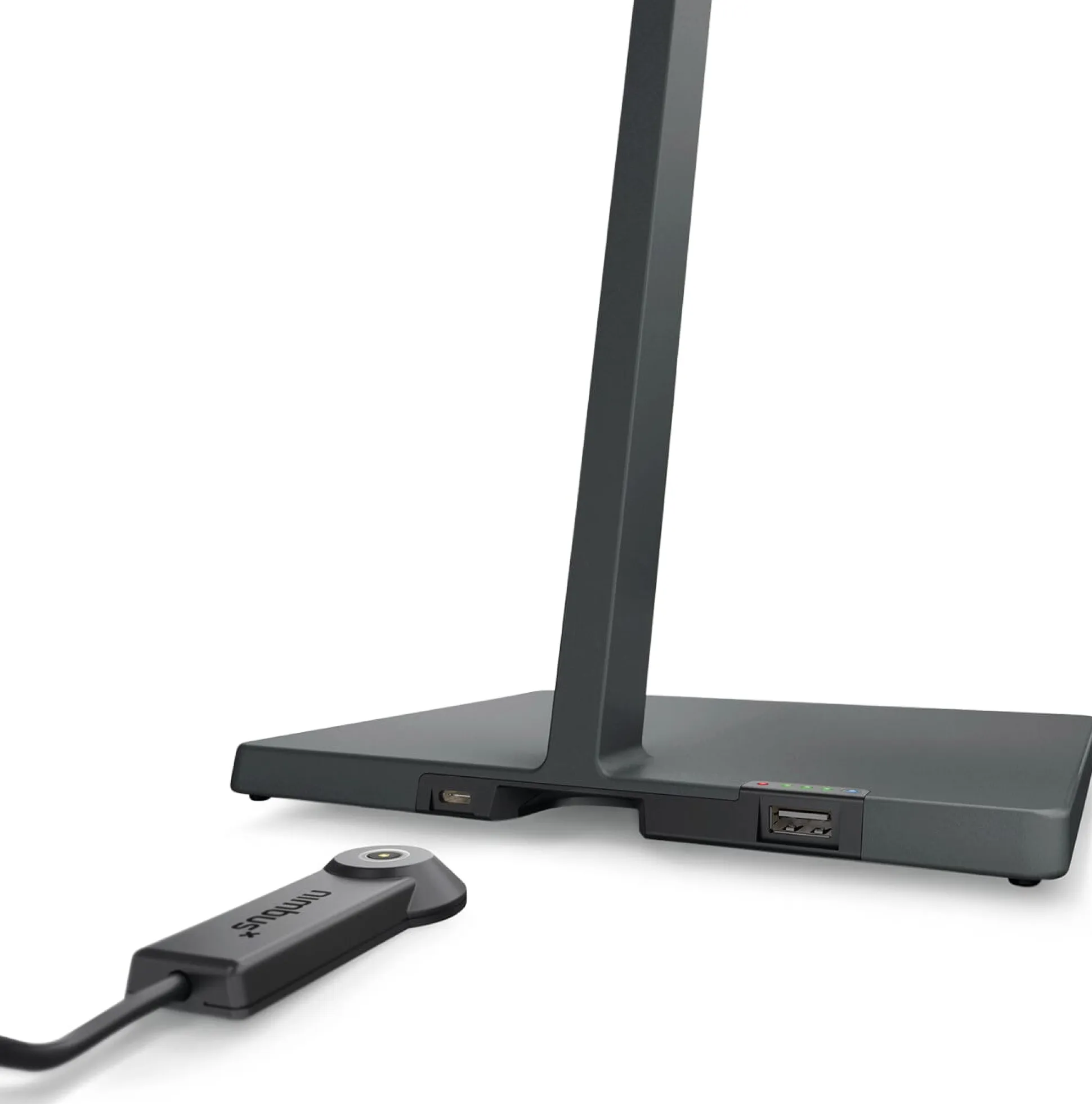 Dabei liefert das austauschbare Akkupack stromnetzunabhängig Energie für bis zu 100 Betriebsstunden, aufgeladen wird die ansonsten kabellose Leuchte wahlweise über das mitgelieferte Ladekabel und den integrierten USB-C-Anschluss im Leuchtenfuß oder den ebenfalls im Lieferumfang enthaltenen Ladepuk. Dieser verbindet sich via Magnet unkompliziert und mit einem hörbaren Klick mit der Leuchte. Im Leuchtenfuß integrierte LED-Indikatoren dokumentieren den Ladestatus, eine zusätzliche USB-A-Schnittstelle ermöglicht das Anschließen portabler Geräte.