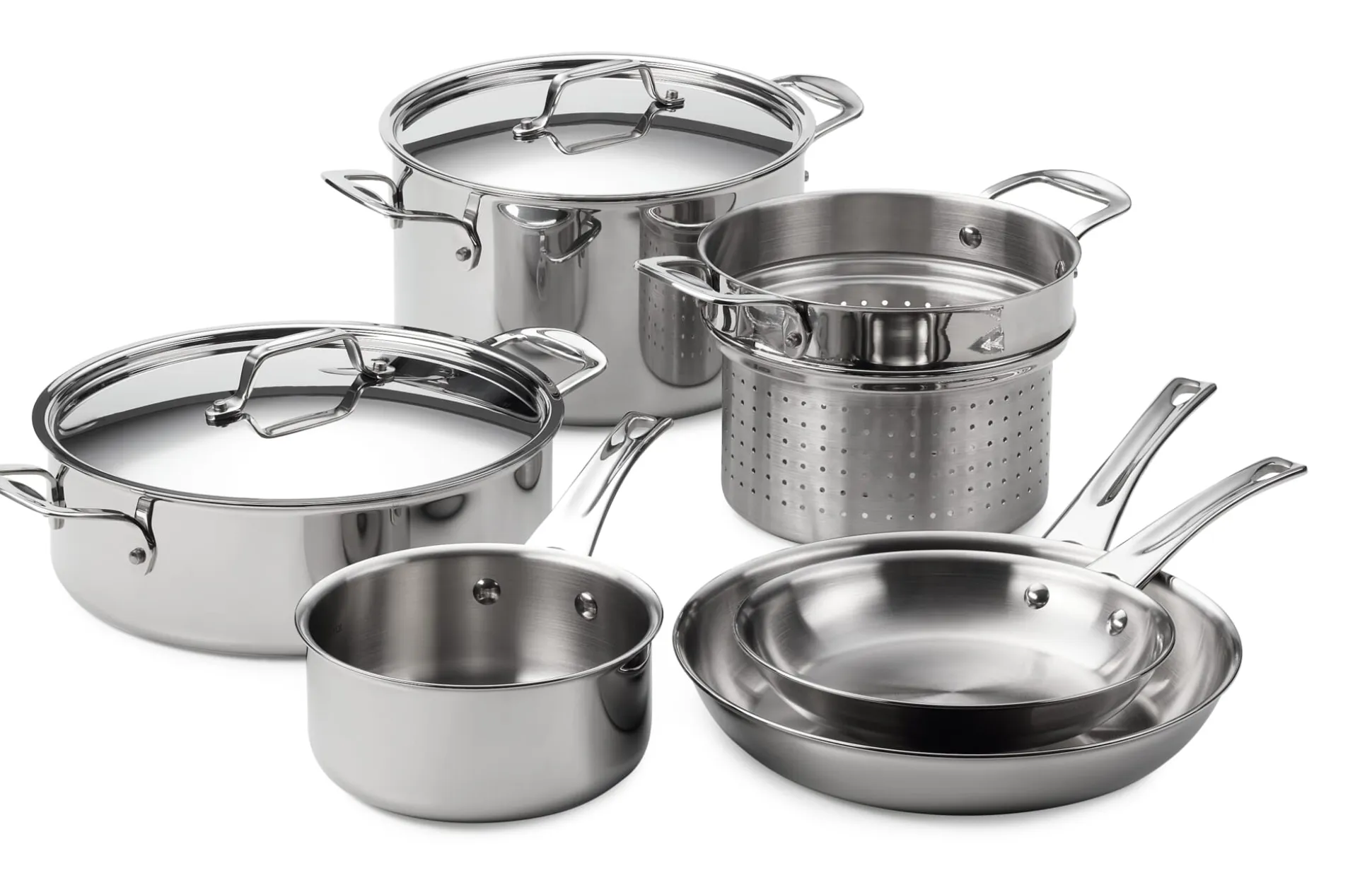 Aus Edelstahl 18/10, hergestellt in Portugal. Die Griffe sind genietet. Reinigung in der Spülmaschine möglich.