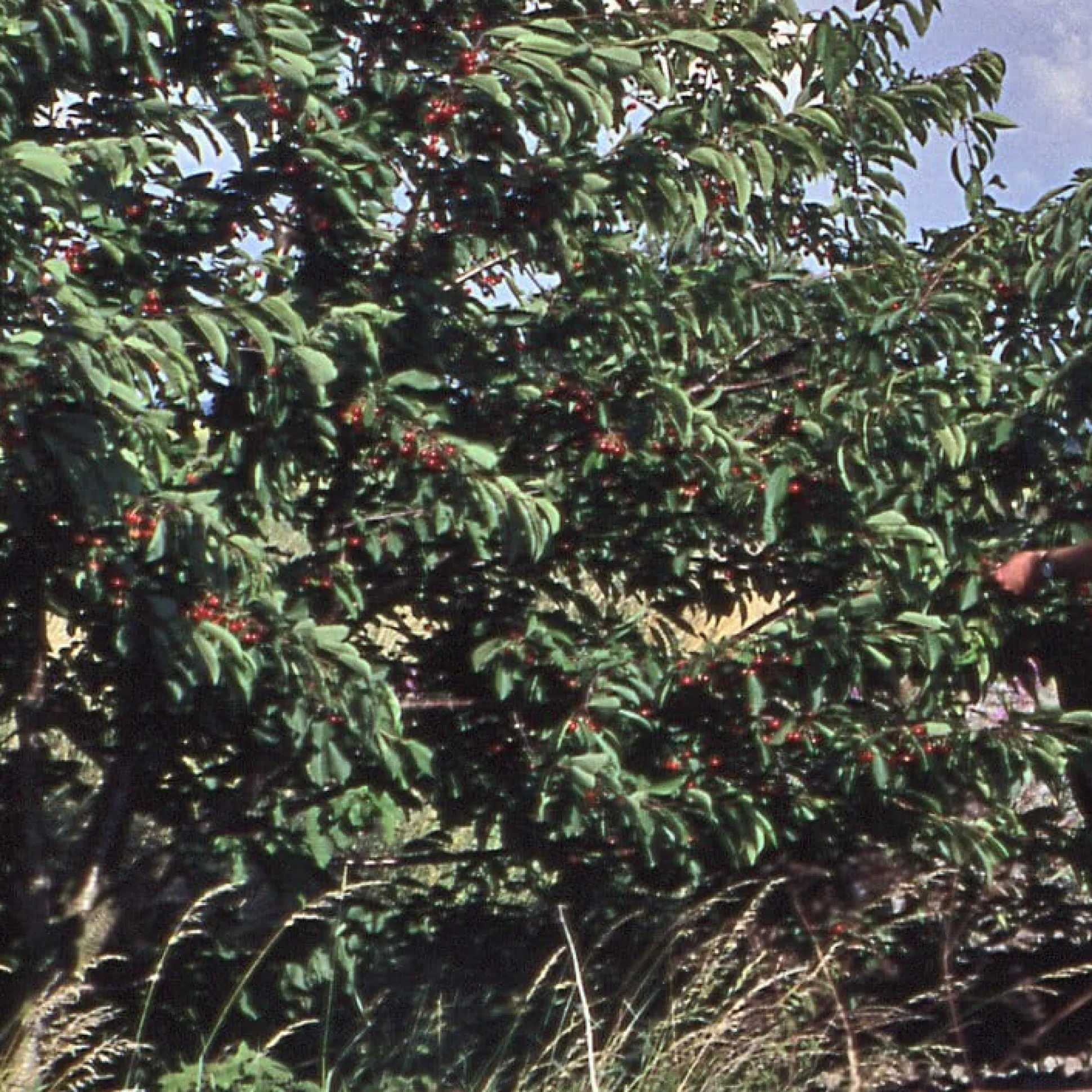 Diese sogenannte Halbkirsche – vermutlich eine Süßkirsche mit Sauerkirscheinschlag – wurde (wildgewachsen) an einer stillgelegten Bahnstrecke in Sachsen-Anhalt gefunden und ist von außerordentlicher Gesundheit und Widerstandsfähigkeit.
