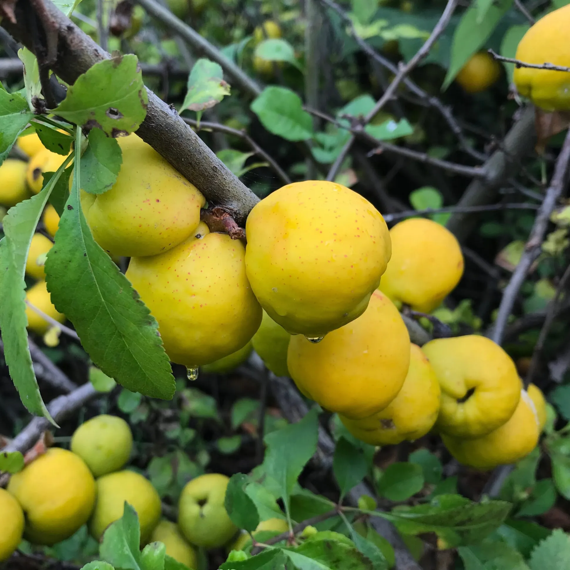 Eine lettische Auslese aus der Strauchquitte, die an dornenlosen Zweigen gelbe bis orangefarbene, aromatisch-saure Früchte mit hohem Vitamin-C-Gehalt bildet, aus denen Gelee, Obstpaste, Kompott, Saft oder Likör hergestellt werden kann. Prächtige, orangerote Blüten im Mai und Juni, sehr gute Bienenweide. Der Strauch ist vollkommen gesund und robust.