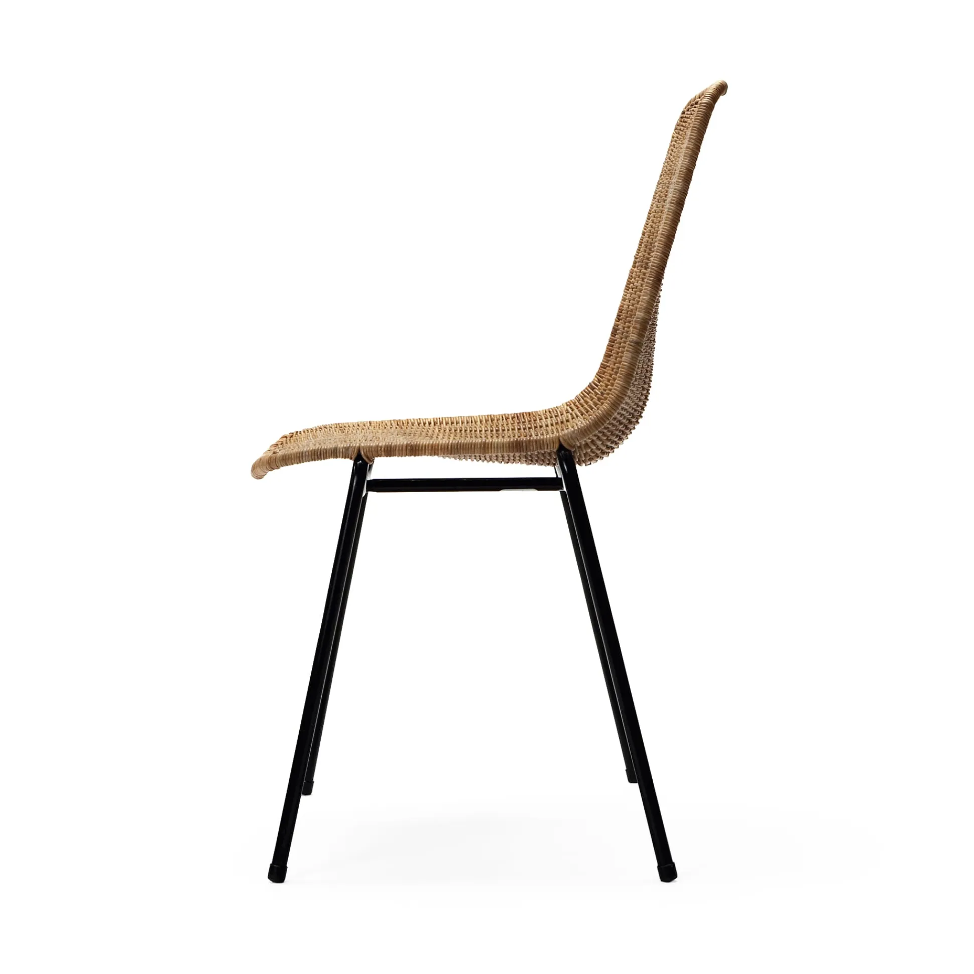 Internationales Multitalent: BASKET wurde vom Schweizer Architekten Gian Franco Legler für ein Restaurant namens BASKET gezeichnet. Schon Anfang der 1950er-Jahre erlebte der Stuhl hohe Popularität in den USA, nicht zuletzt wegen einer besonderen Auszeichnung für seine Gestaltung durch das MoMA in New York. Heute wird der Stuhl von einer australischen Firma in Indonesien beflochten. Das macht Sinn, denn der Werkstoff Rattan wird dort angebaut und unmittelbar verarbeitet. Formaler Minimalismus trifft bei BASKET auf minimalistischen Materialeinsatz. Das Geflecht aus Rattan, das die filigrane Stahlstruktur umspannt, bietet Flexibilität und hohen Komfort im Sitz und Rückenbereich, da es sich dem Körperdruck anpasst. BASKET ist für die Nutzung am privaten Essplatz wie in der Gastronomie geeignet.
