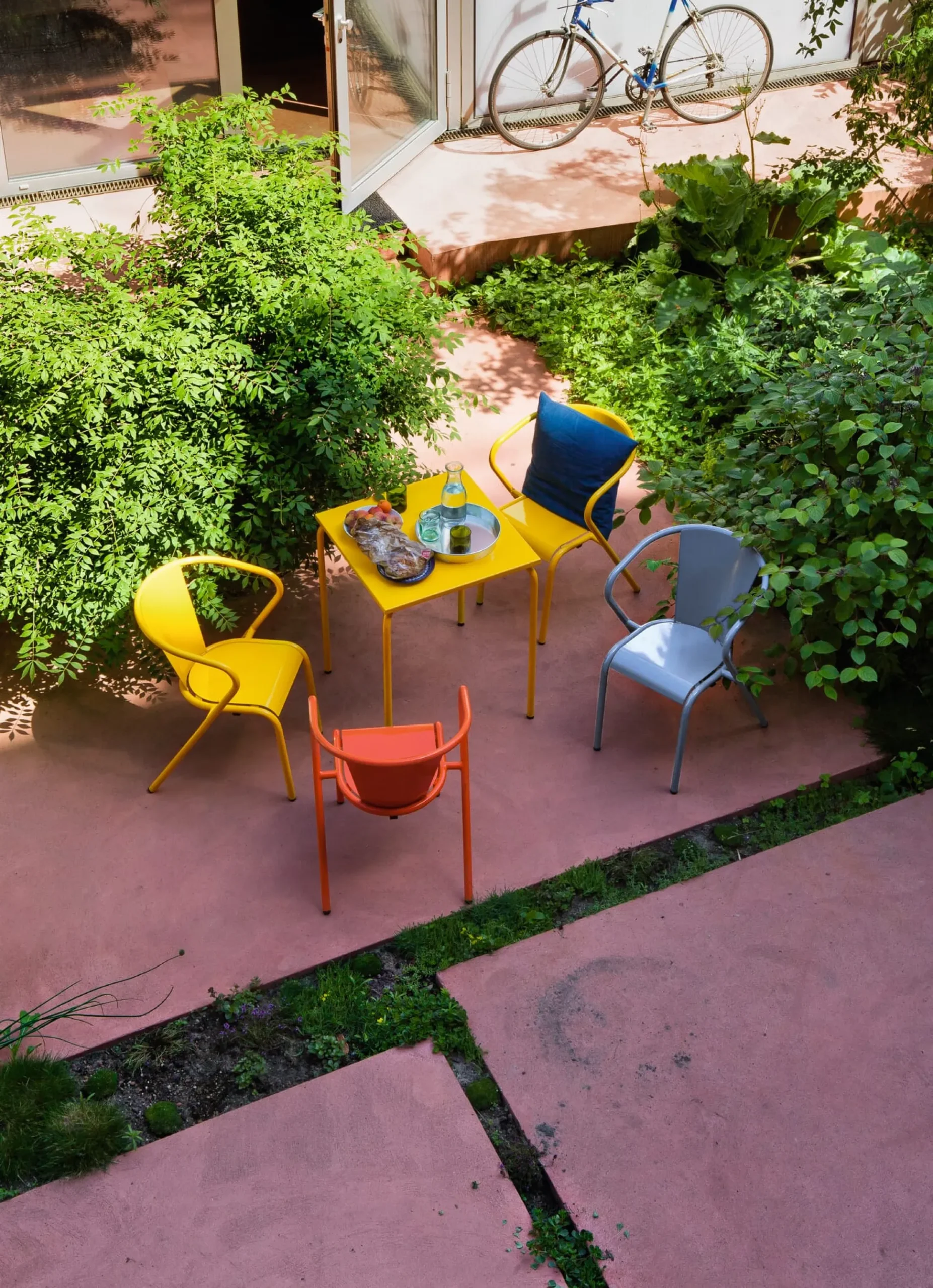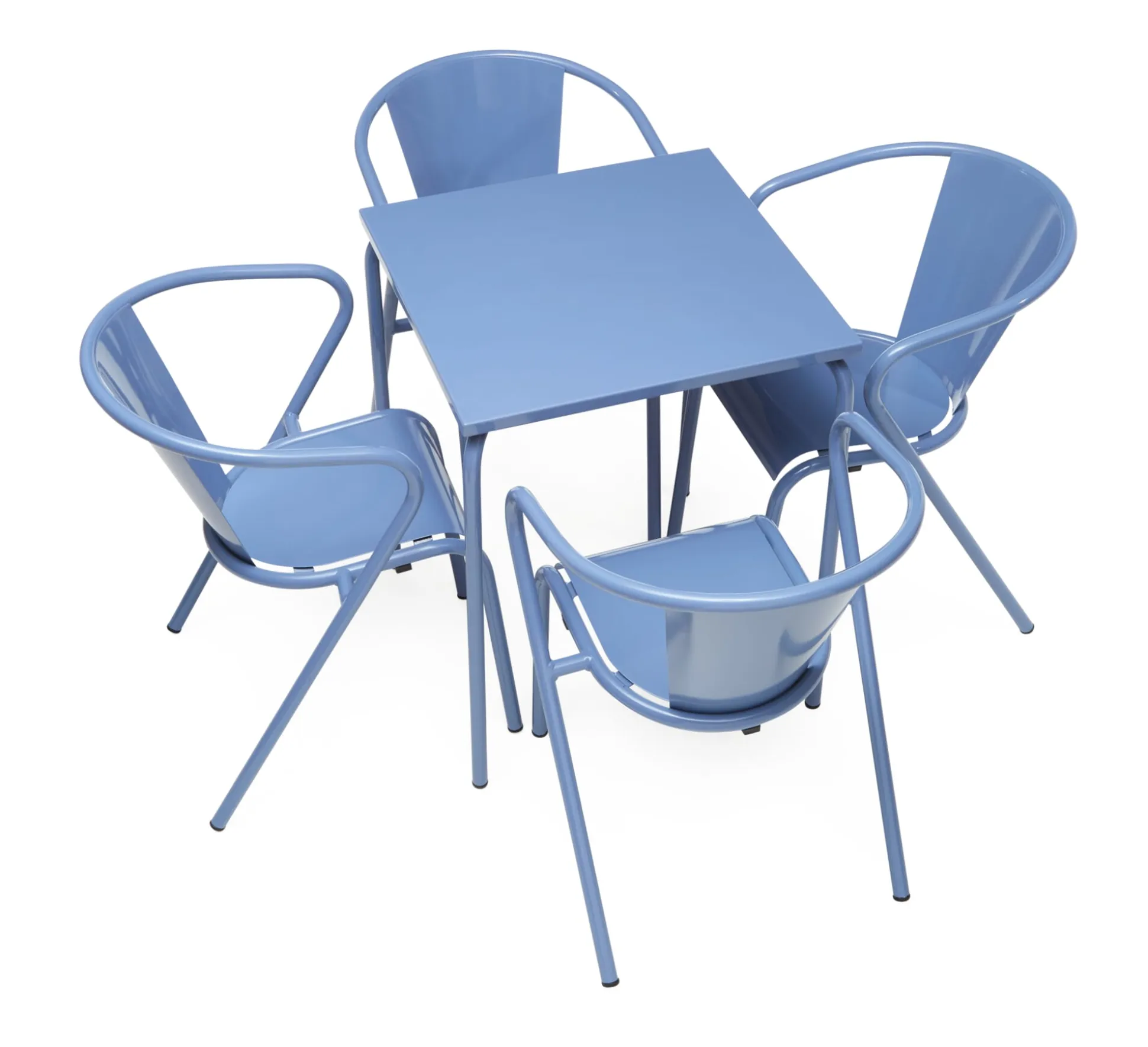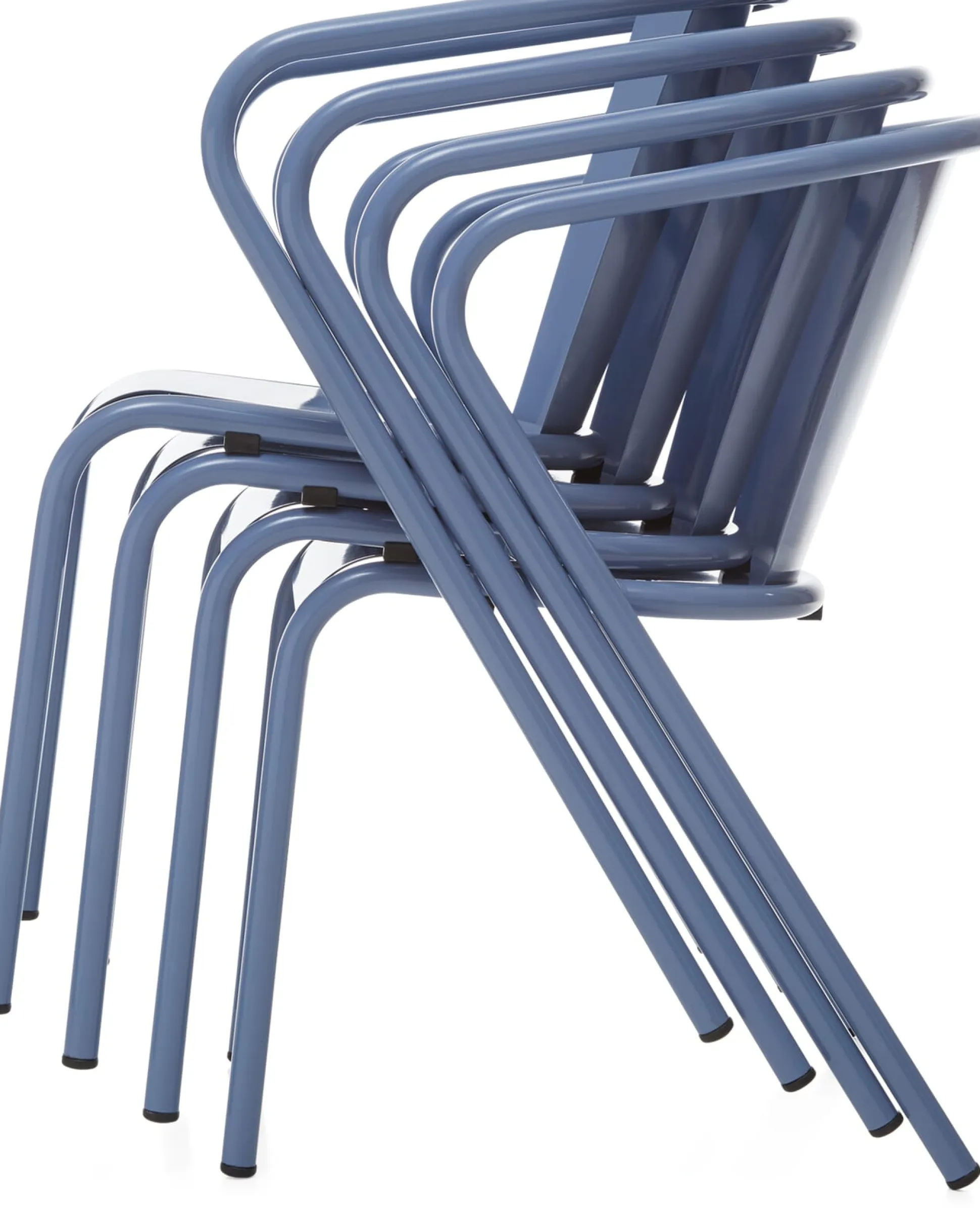 Portugiesische Ikone: Seit den 1950er-Jahren produziert und aus dem öffentlichen Bild Portugals nicht wegzudenken ist dieser schöne Stuhl aus Stahl, wetterfest pulverbeschichtet. Dank seiner Formgebung und seinem leicht abfallenden Sitzwinkel sitzt man in ihm sehr komfortabel und entspannt – nicht nur beim Café Galão. Schöne Sitzgelegenheit für den Ess-, Lese- und Sonnenplatz. In der Auswahl an attraktiven Farben verbirgt sich hinter den Versionen Perlweiß, Taubenblau und Blassgrün eine Besonderheit: Sie gehören zu den Farben, die die Stadtverwaltung Lissabons als Farben zur öffentlichen Bestuhlung freigegeben hat.