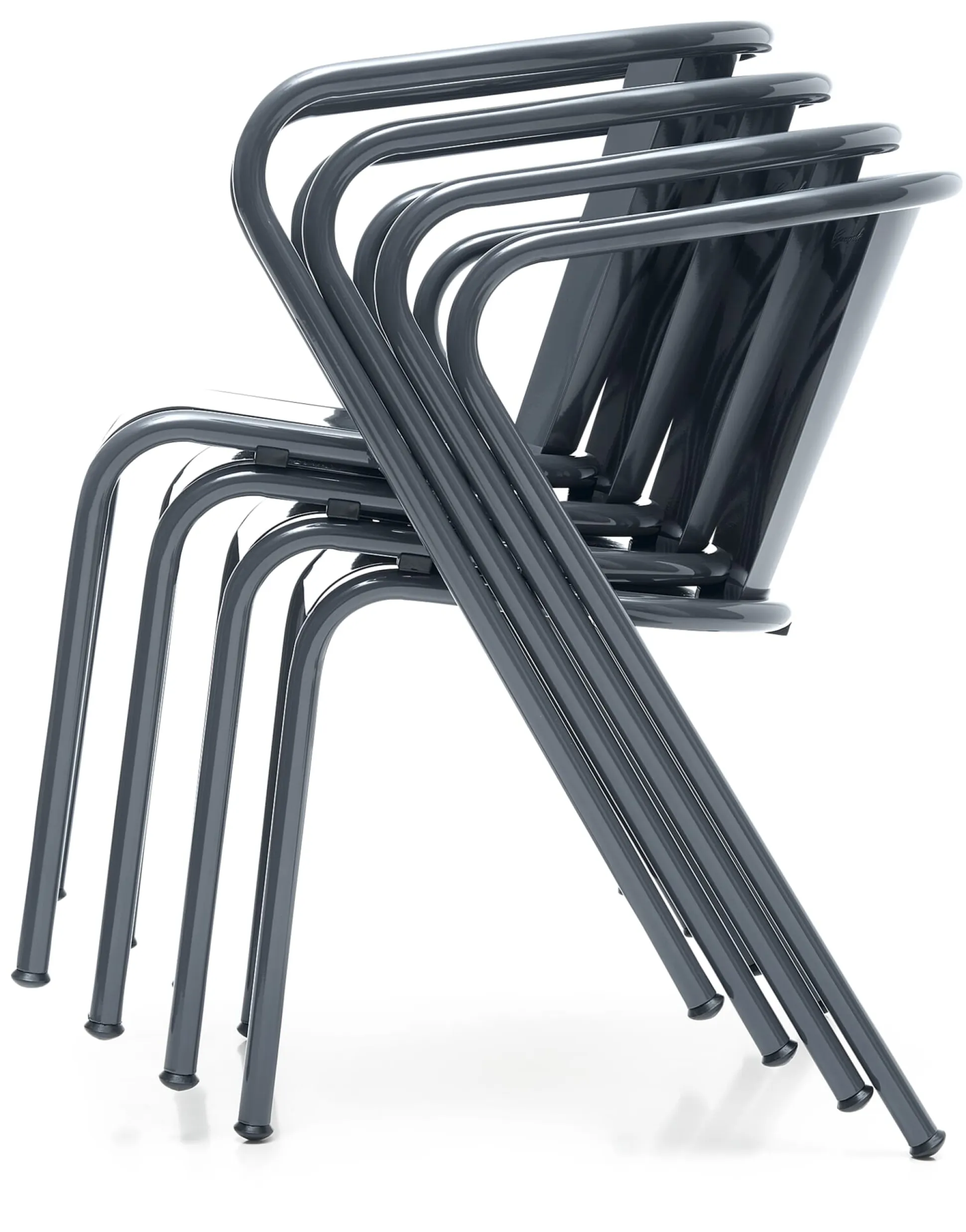 Portugiesische Ikone: Seit den 1950er-Jahren produziert und aus dem öffentlichen Bild Portugals nicht wegzudenken ist dieser schöne Stuhl aus Stahl, wetterfest pulverbeschichtet. Dank seiner Formgebung und seinem leicht abfallenden Sitzwinkel sitzt man in ihm sehr komfortabel und entspannt – nicht nur beim Café Galão. Schöne Sitzgelegenheit für den Ess-, Lese- und Sonnenplatz. In der Auswahl an attraktiven Farben verbirgt sich hinter den Versionen Perlweiß, Taubenblau und Blassgrün eine Besonderheit: Sie gehören zu den Farben, die die Stadtverwaltung Lissabons als Farben zur öffentlichen Bestuhlung freigegeben hat.