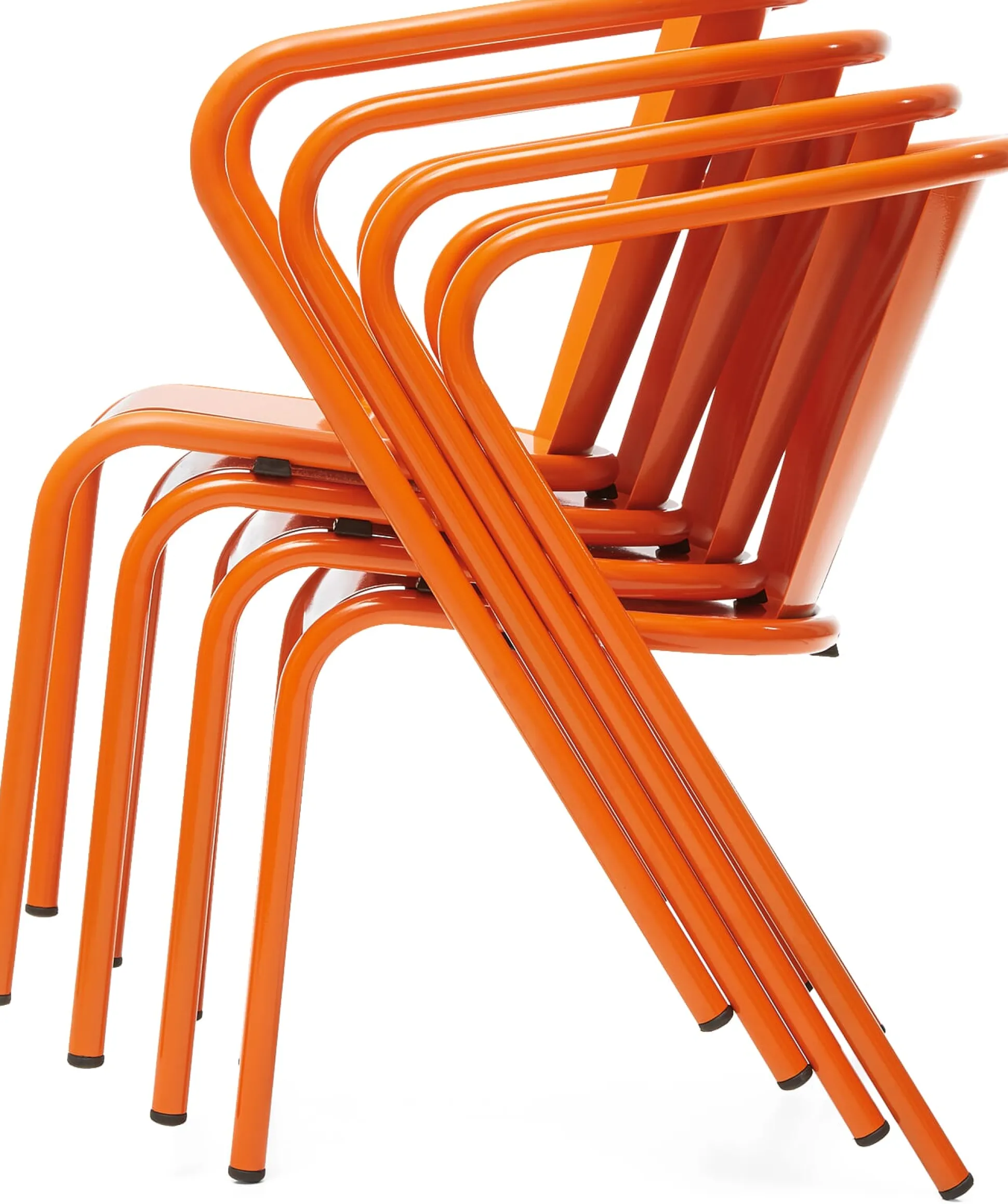 Portugiesische Ikone: Seit den 1950er-Jahren produziert und aus dem öffentlichen Bild Portugals nicht wegzudenken ist dieser schöne Stuhl aus Stahl, wetterfest pulverbeschichtet. Dank seiner Formgebung und seinem leicht abfallenden Sitzwinkel sitzt man in ihm sehr komfortabel und entspannt – nicht nur beim Café Galão. Schöne Sitzgelegenheit für den Ess-, Lese- und Sonnenplatz. In der Auswahl an attraktiven Farben verbirgt sich hinter den Versionen Perlweiß, Taubenblau und Blassgrün eine Besonderheit: Sie gehören zu den Farben, die die Stadtverwaltung Lissabons als Farben zur öffentlichen Bestuhlung freigegeben hat.