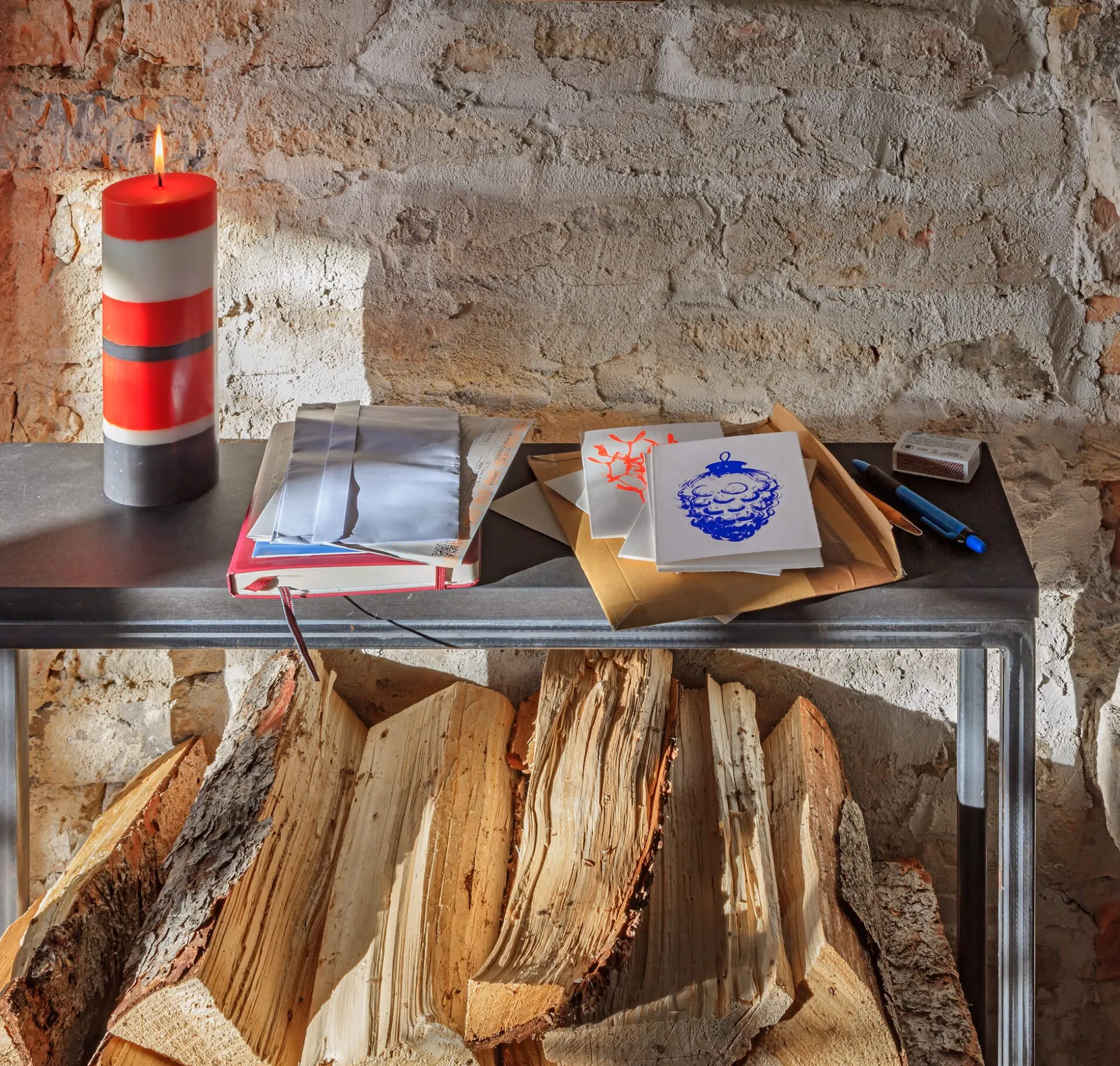 Der dicke Weihnachtsmann – schön zu erkennen im typischen Farbschema. Weihnachten kann also kommen und vorher gibt es hier 73 Stunden Brenndauer mit durchgefärbtem Wachs, das Farbschicht für Farbschicht per Hand gegossen wird. Die Kerzen kommen aus fairem Handel und sind paraffinfrei.