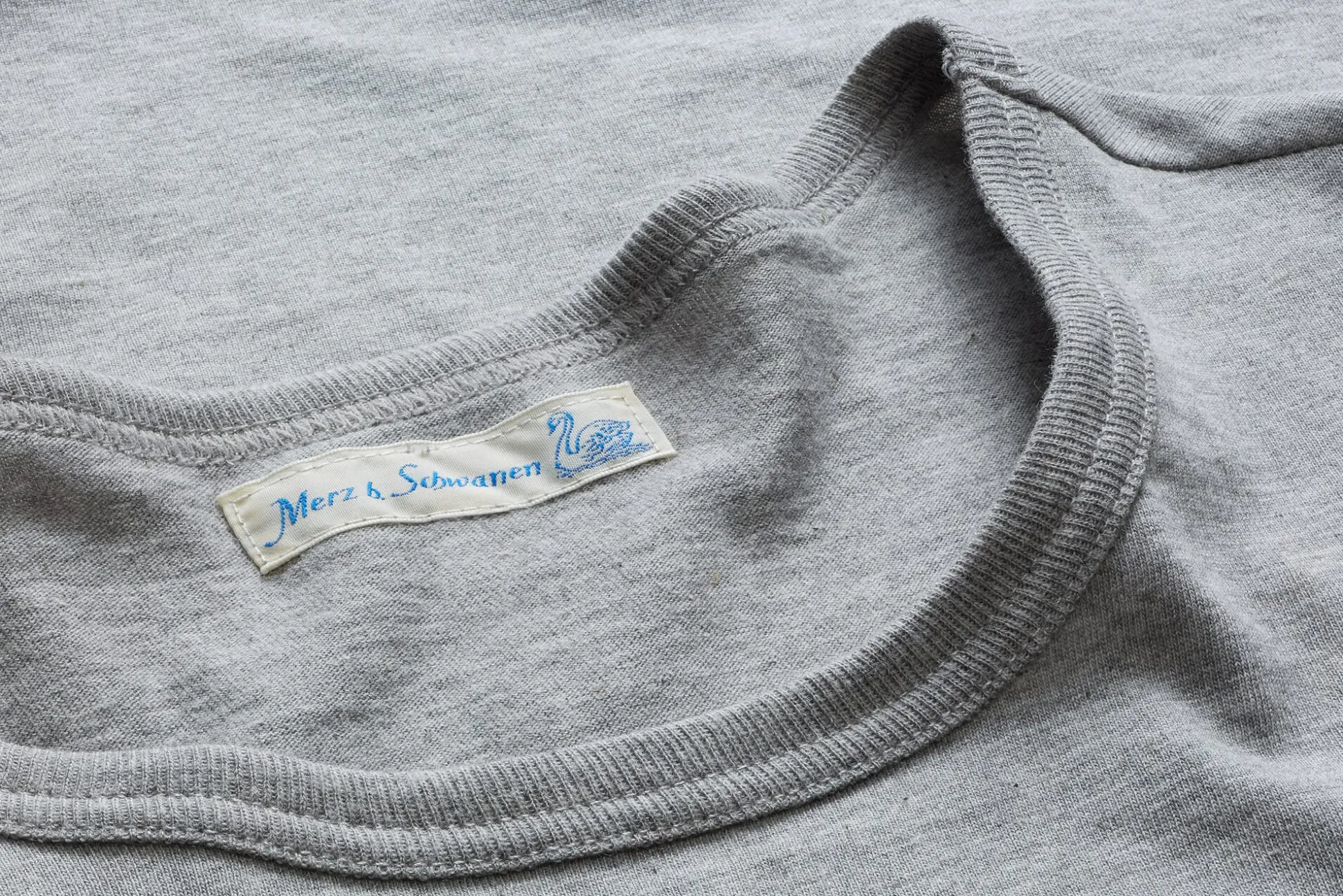 Auf der Schwäbischen Alb fertigt Merz b. Schwanen dieses klassische T-Shirt als Reminiszenz an die 1950er Jahre, in denen das ehemalige Unterhemd nicht zuletzt durch Leinwandgrößen wie Marlon Brando und James Dean zur Oberbekleidung und Ikone der Popkultur wurde. Die verwendete Baumwolle stammt aus kontrolliert biologischem Anbau.