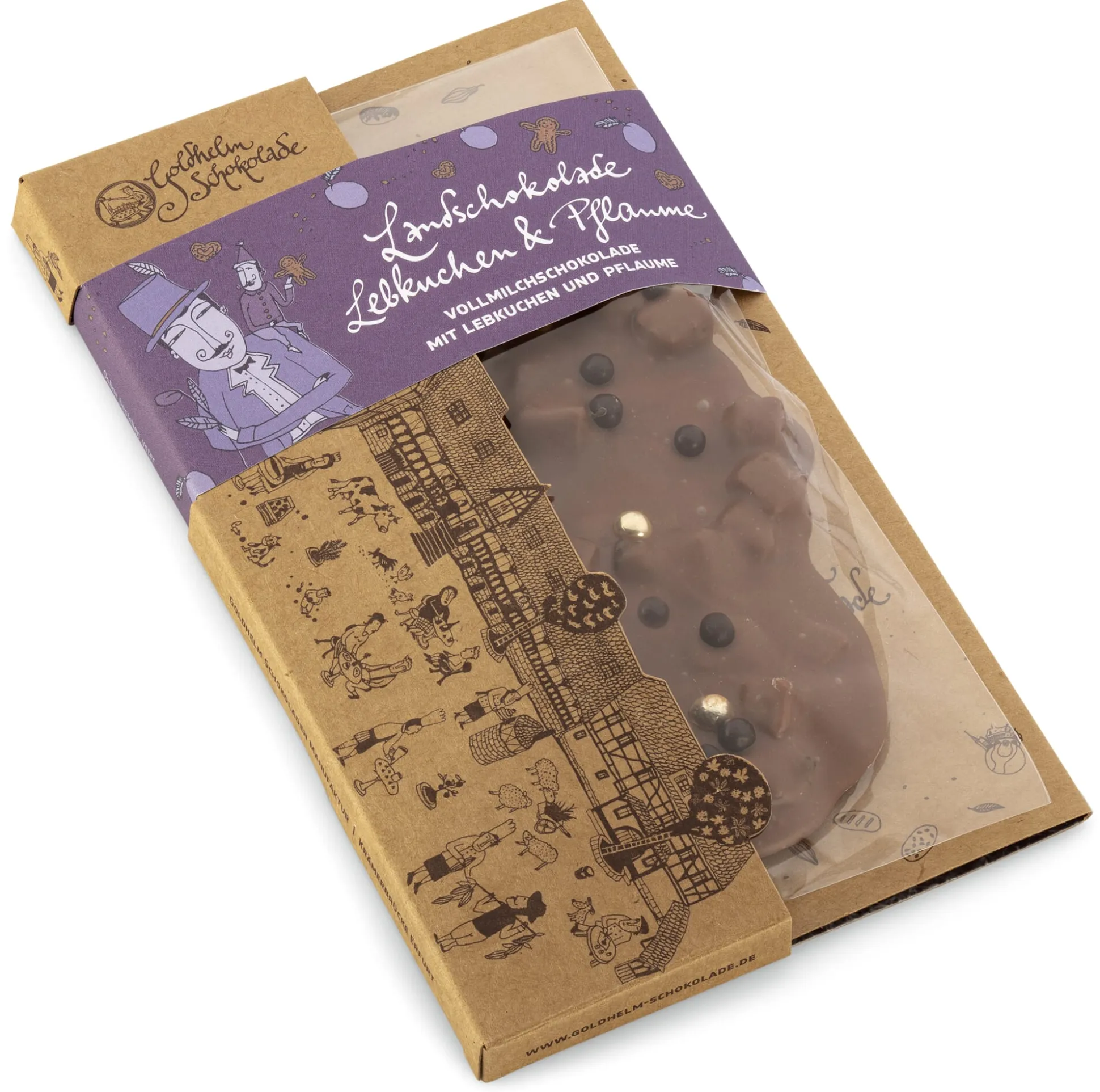 Vollmilchschokolade mit Lebkuchen und Pflaumen. Kakao: 41 % mindestens