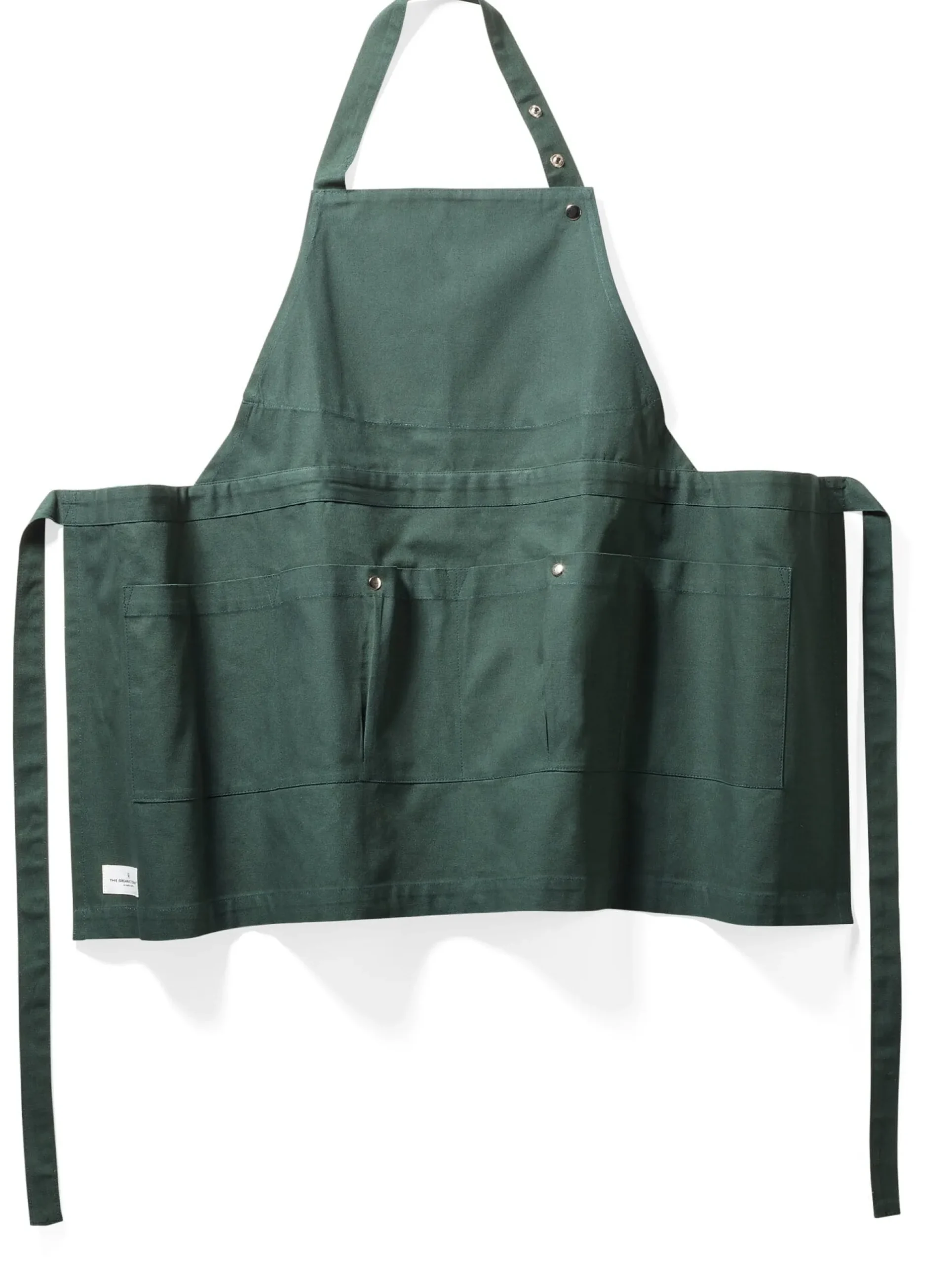 Diese Schürze aus kräftigem Baumwollgewebe hat The Organic Company mit vier großen Taschen ausgestattet. Das macht sie zum vielseitig einsetzbaren Allrounder nicht nur in der Küche, sondern auch im Garten, in der Werkstatt, beim Malen und Basteln. Die Taschen halten alles vor, was man gerade am Mann oder an der Frau haben muss. Und damit nichts herausfällt beim geschäftigen Werkeln, sind zwei von ihnen mit einem Druckknopf zu schließen. Im Brustlatz ist eine weitere Tasche mit seitlichen Öffnungen eingearbeitet. Die Taschenschürze lässt sich durch das sechsfach verstellbare Halsband und den langen Bindegürtel gut an die verschiedenen Körpergrößen (und -umfänge) anpassen. Eben ein Allrounder durch und durch.