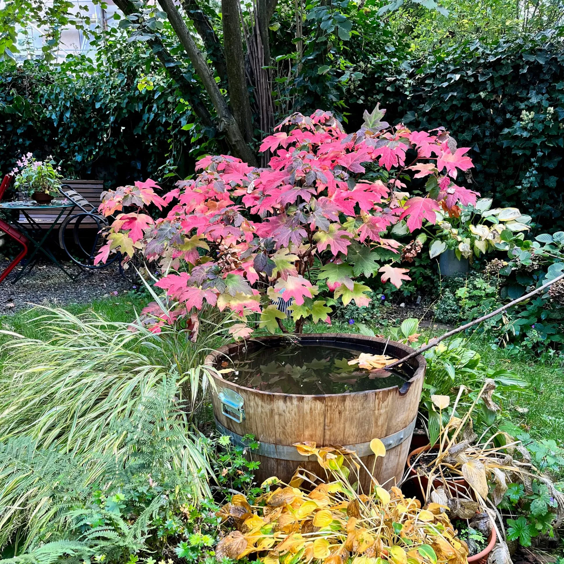 - Für kleinere Gärten: ein halbes, upgecyceltes Weinfass als Miniteich