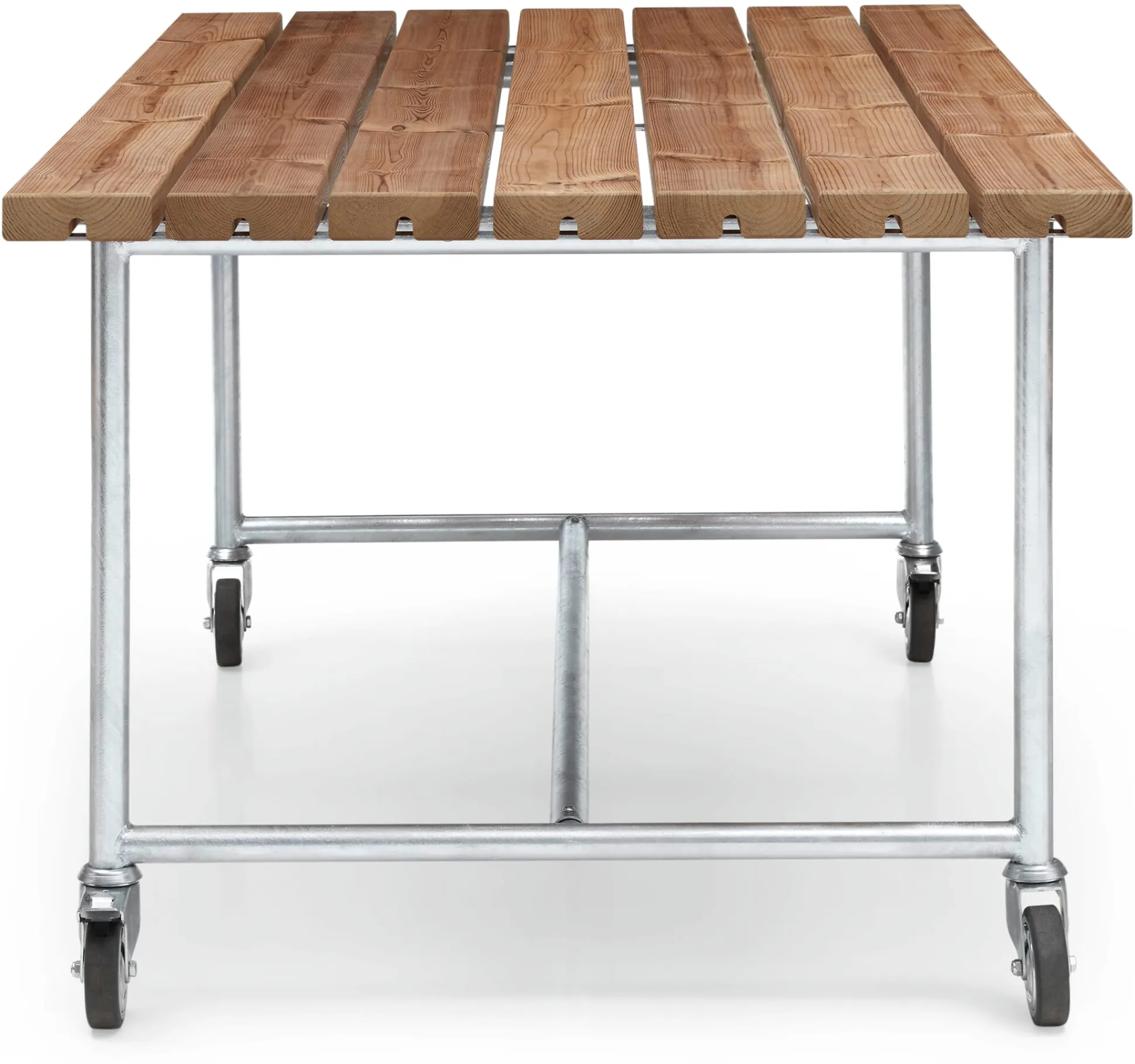 Von oben bis unten robust und nahezu unverwüstlich: Außenmöbel-Serie JÜTLAND zeigt mit ihrer industriellen Bauweise auf den ersten Blick, was sie kann. Feuerverzinkte Stahlgestelle und die Beplankung aus zertifizierter Thermokiefer aus Finnland trotzen der Witterung. Die Produkte sind auf ihren teilweise arretierbaren Schwerlastrollen leicht in Hof und Garten zu bewegen.