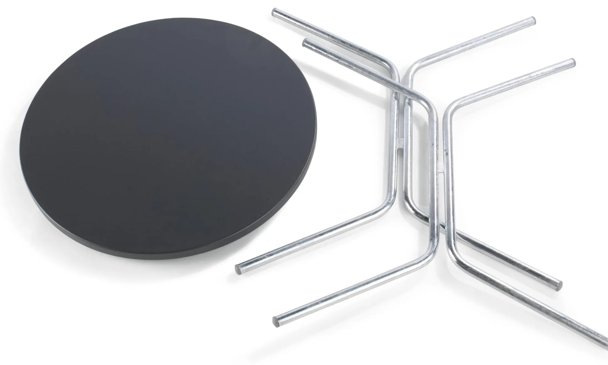 Material: Tischplatte: Stahl, pulverbeschichtet; Tischgestell: Stahlrohr, feuerverzinkt; Füße: Kunststoff