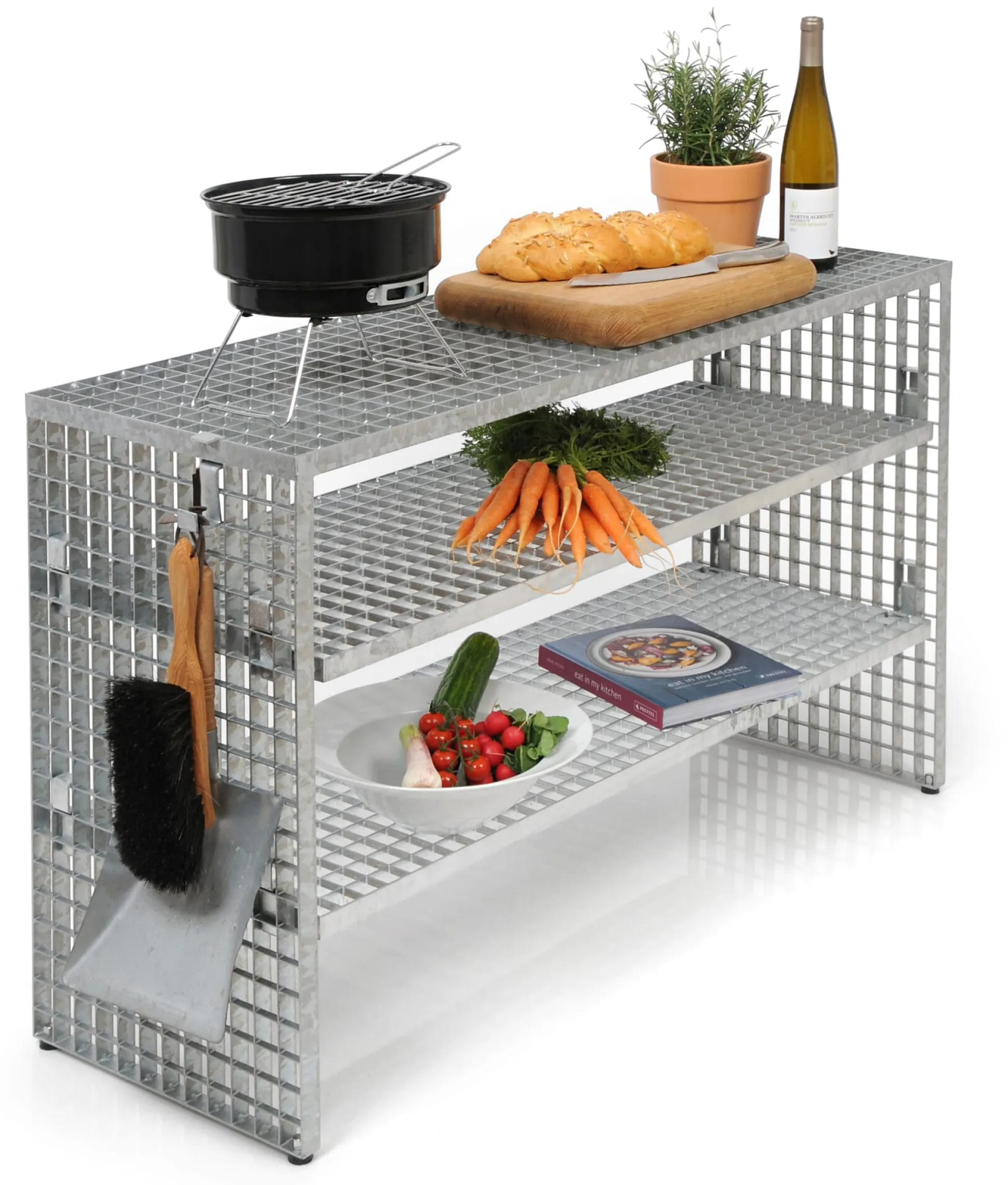 Material: Stahl, feuerverzinkt; Füße: Kunststoff