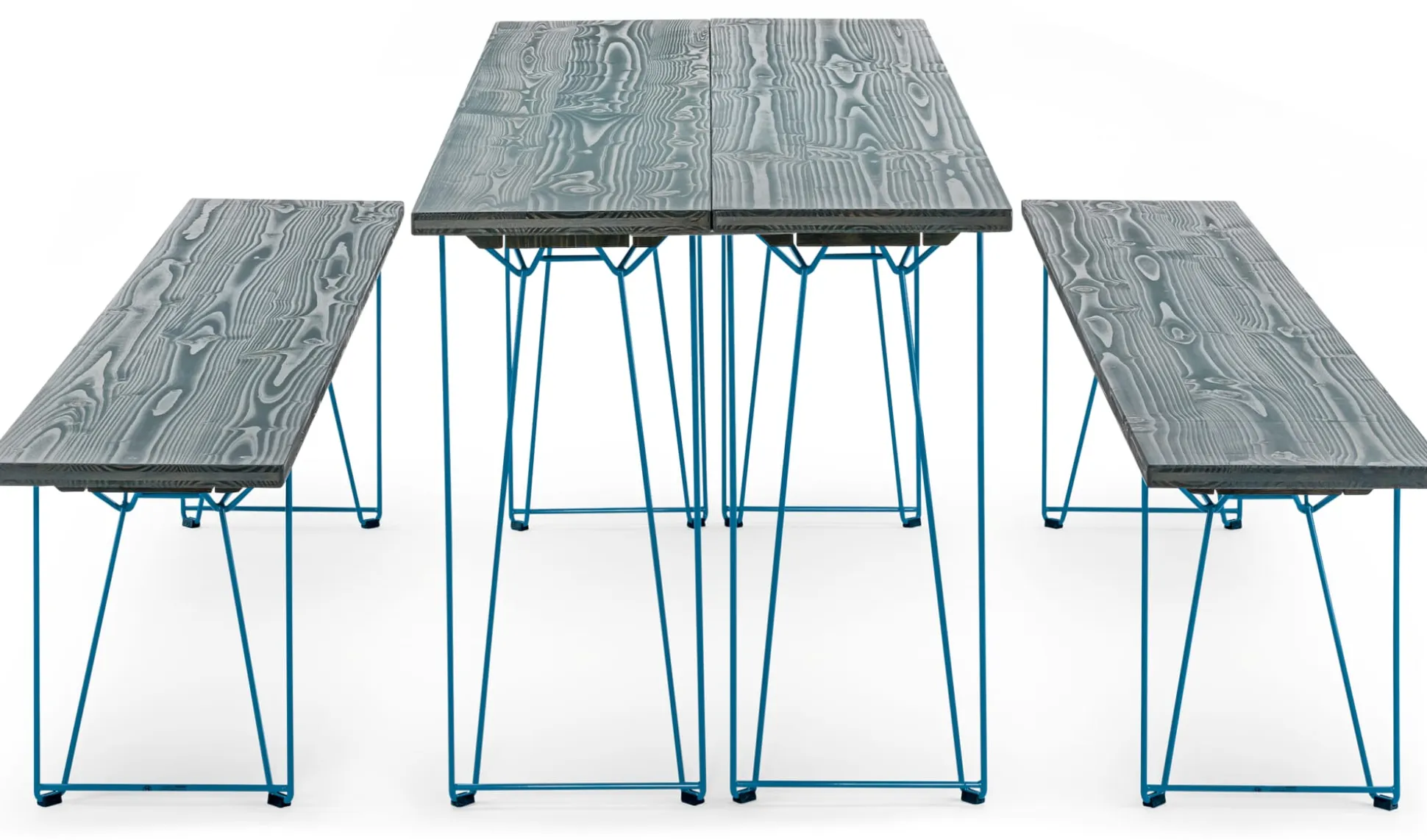Vielseitiges Möbelstück, schöne Bank und schlanker Tisch: BTB ist alles in einem, denn im Handumdrehen verwandeln sich seine Bauteile von einer Bank in einen Tisch. Wie’s funktioniert? Das mit einem Handgriff unter die Platte (nicht im Lieferumfang enthalten) klickbare Gestell lässt sich mit seinem kurzen Schenkel als Gestell unter einer Bank in üblicher Sitzhöhe und seinem langen Schenkel als Gestell für einen schlanken Tisch einsetzen. So erfüllt eine Bank aus den BTB-Elementen elegant in Fluren ihren Dienst als Sitzgelegenheit und Ablage. Eine Gruppe von zwei Bänken und einem Tisch funktioniert als Essplatz auf dem Balkon. Und durch die Stapelbarkeit, Robustheit und Wetterfestigkeit, sowohl der Platten als auch der Gestelle, ist BTB probate Lösung überall dort, wo viele Bänke und Tische platziert werden müssen – platzsparend und leicht zu handhaben. Falls eine breitere Tischplatte gewünscht ist, sind die Platten an ihren Längsseiten mithilfe von Spanngummis miteinander koppelbar. BTB ist also viel mehr als eine hochwertige Biergartenmöblierung.
