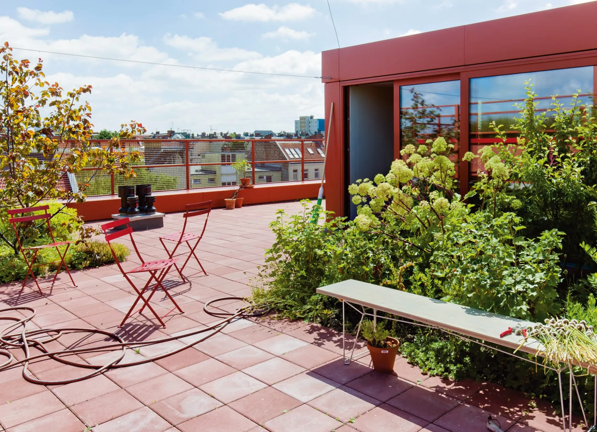 Vielseitiges Möbelstück, schöne Bank und schlanker Tisch: BTB ist alles in einem, denn im Handumdrehen verwandeln sich seine Bauteile von einer Bank in einen Tisch. Wie’s funktioniert? Das mit einem Handgriff unter die Platte (nicht im Lieferumfang enthalten) klickbare Gestell lässt sich mit seinem kurzen Schenkel als Gestell unter einer Bank in üblicher Sitzhöhe und seinem langen Schenkel als Gestell für einen schlanken Tisch einsetzen. So erfüllt eine Bank aus den BTB-Elementen elegant in Fluren ihren Dienst als Sitzgelegenheit und Ablage. Eine Gruppe von zwei Bänken und einem Tisch funktioniert als Essplatz auf dem Balkon. Und durch die Stapelbarkeit, Robustheit und Wetterfestigkeit, sowohl der Platten als auch der Gestelle, ist BTB probate Lösung überall dort, wo viele Bänke und Tische platziert werden müssen – platzsparend und leicht zu handhaben. Falls eine breitere Tischplatte gewünscht ist, sind die Platten an ihren Längsseiten mithilfe von Spanngummis miteinander koppelbar. BTB ist also viel mehr als eine hochwertige Biergartenmöblierung.
