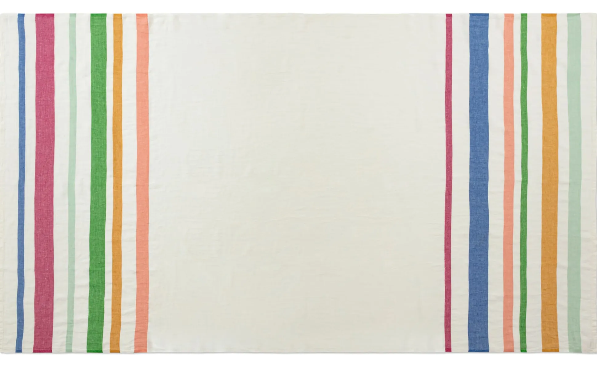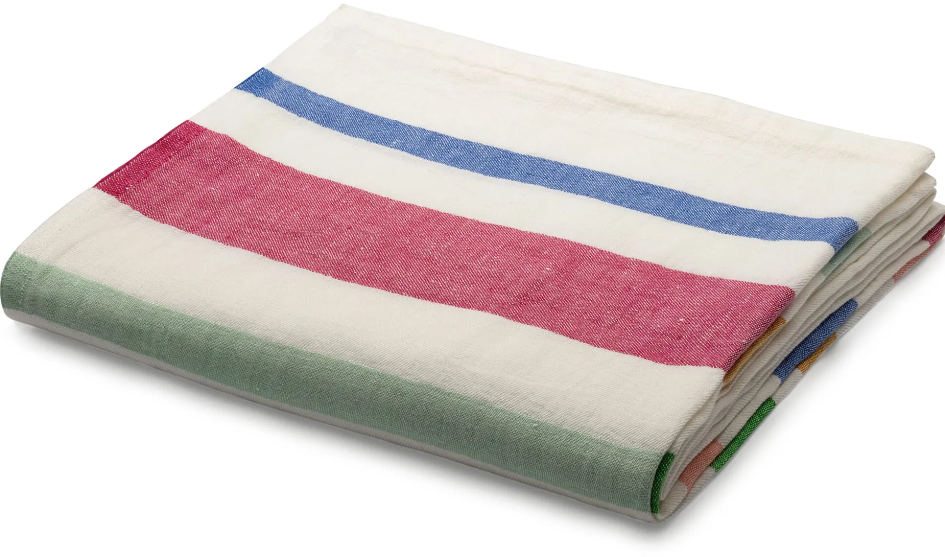 Ihr Design und die fröhlichen Farben verdankt die Tischwäsche diesem kenianischen Einfluss, denn in den naturweißen Fond sind unterschiedlich breite, garngefärbte Streifen eingewebt.