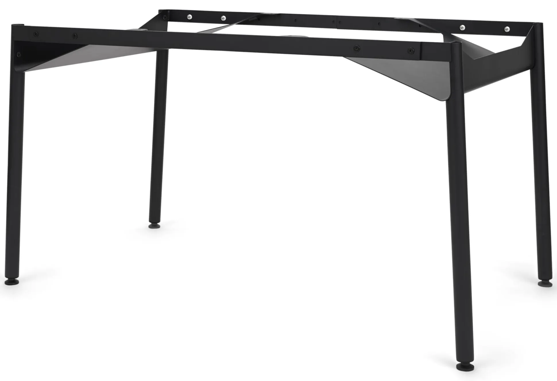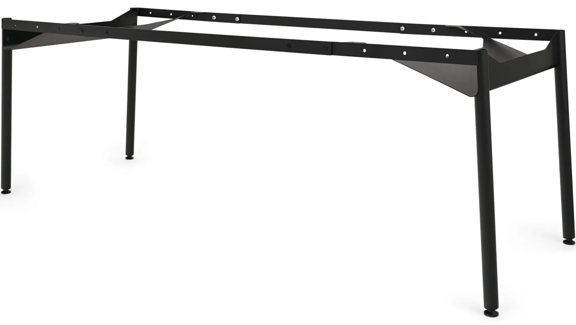 Wie aus dem Lehrbuch der Konstruktion: Diagonale heißt das Zauberwort! Beim Tischgestell ZEHDENICKER sorgt sie – elegant ausgeformt mit den an den Kopfseiten platzierten wannenartigen Bauteilen – für Stabilität und Verwindungssteifigkeit. Kein Wackeln, kein Schaukeln. Und das unabhängig davon, ob das Gestell im Architekturbüro oder am Essplatz eingesetzt wird. Aber auch sonst hat der formschöne und trotz seiner Robustheit und Stabilität fast filigran wirkende ZEHDENICKER allerhand zu bieten: Die stählernen Zargen des Tischgestells sind mit einem Lochraster versehen und erlauben es, das Gestell zwischen einer Breite von 135 bis 210 cm in festen Abständen zu variieren. Die beiden Wannen an den Köpfen des Tischs sind als Ablage für beispielsweise Servietten am Esstisch, Zeitungen oder auch die Mehrfachsteckdose am Arbeitsplatz zu nutzen. Zur Ausstattung gehören nivellierbare Stellfüße an den Tischbeinen. Alle Bauteile werden getrennt geliefert und sind mit wenigen Schrauben im Handumdrehen montiert.