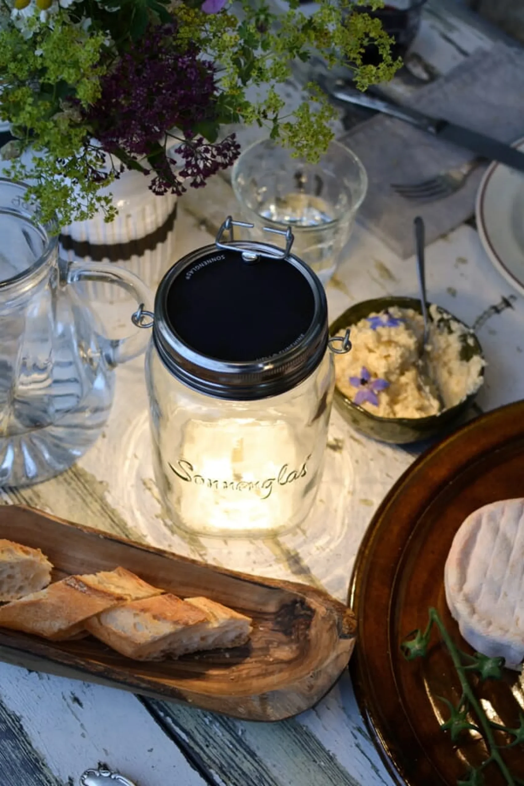 Das Prinzip dieser Solarlampe ist simpel und genial: Tagsüber speichert ein in den Deckel des Glasbehälters hocheffizientes, integriertes Solarpanel die Sonnenenergie, die in der Dunkelheit zur Beleuchtung abgerufen werden kann. Ideal als atmosphärisches Licht auf dem Esstisch im Freien, der Fensterbank oder der Balkonbrüstung. Diese technisch weiterentwickelte Version besitzt einen zusätzlichen Schalter, eine farbige Ladestandsanzeige, ist zudem dimmbar und spritzwassergeschützt.