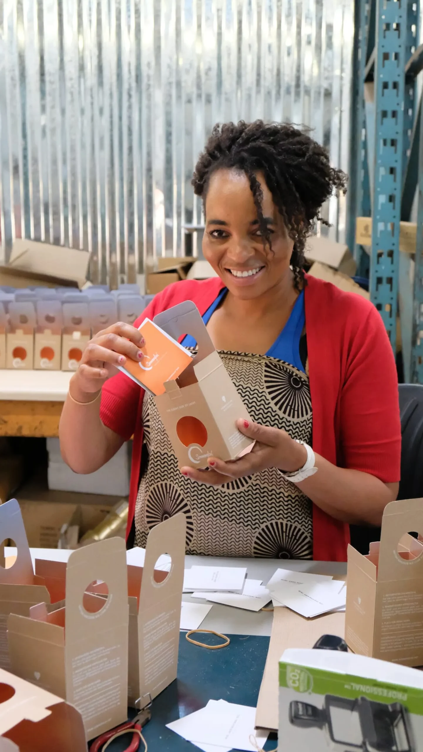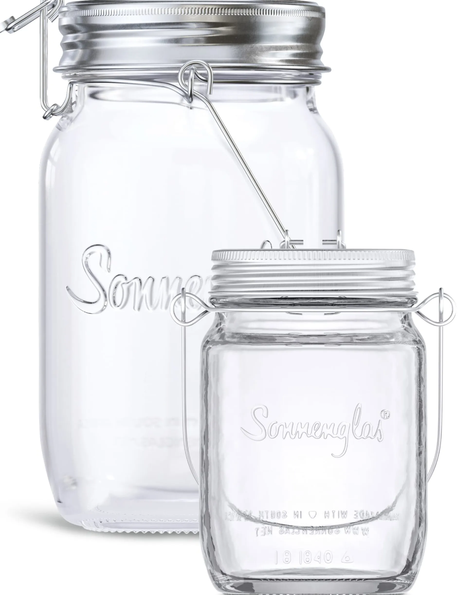 Der Glascontainer unter der Leuchteneinheit sorgt für die Distanz zur beleuchteten Fläche und erzeugt so eine kleine Lichtinsel, die sogar in unmittelbarer Umgebung als Leselicht dienen kann. Ein kleiner Bügel am Schraubdeckel dient als Magnetschalter. Ist dieser aktiviert, schaltet sich die Leuchte ab einer bestimmten Beleuchtungsstärke automatisch an und aus, beispielsweise bei Sonnenauf- und -untergang. Das integrierte Sonnenmodul ist auch ohne Glasbehälter voll funktionsfähig und als mobile Leuchte in der Hosentasche zu tragen. Über den Bedienknopf kann es an- und ausgeschaltet werden, ebenso verfügt es über eine Notlichtfunktion, bei der die LEDs blinken. SONNENGLAS® wird in einem Fair-Trade-Projekt in Südafrika produziert und genießt dort in hoher Verbreitung Kultcharakter.