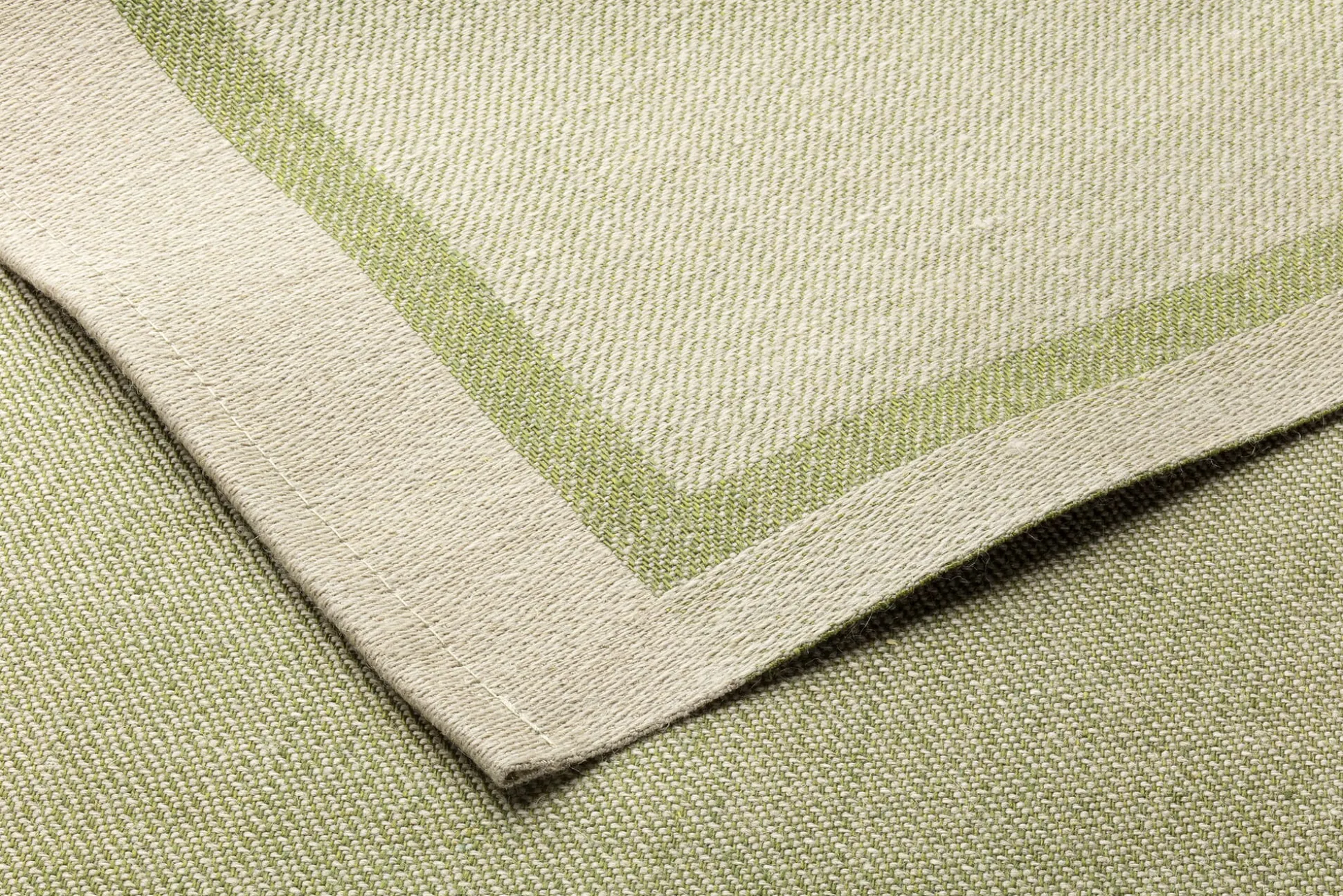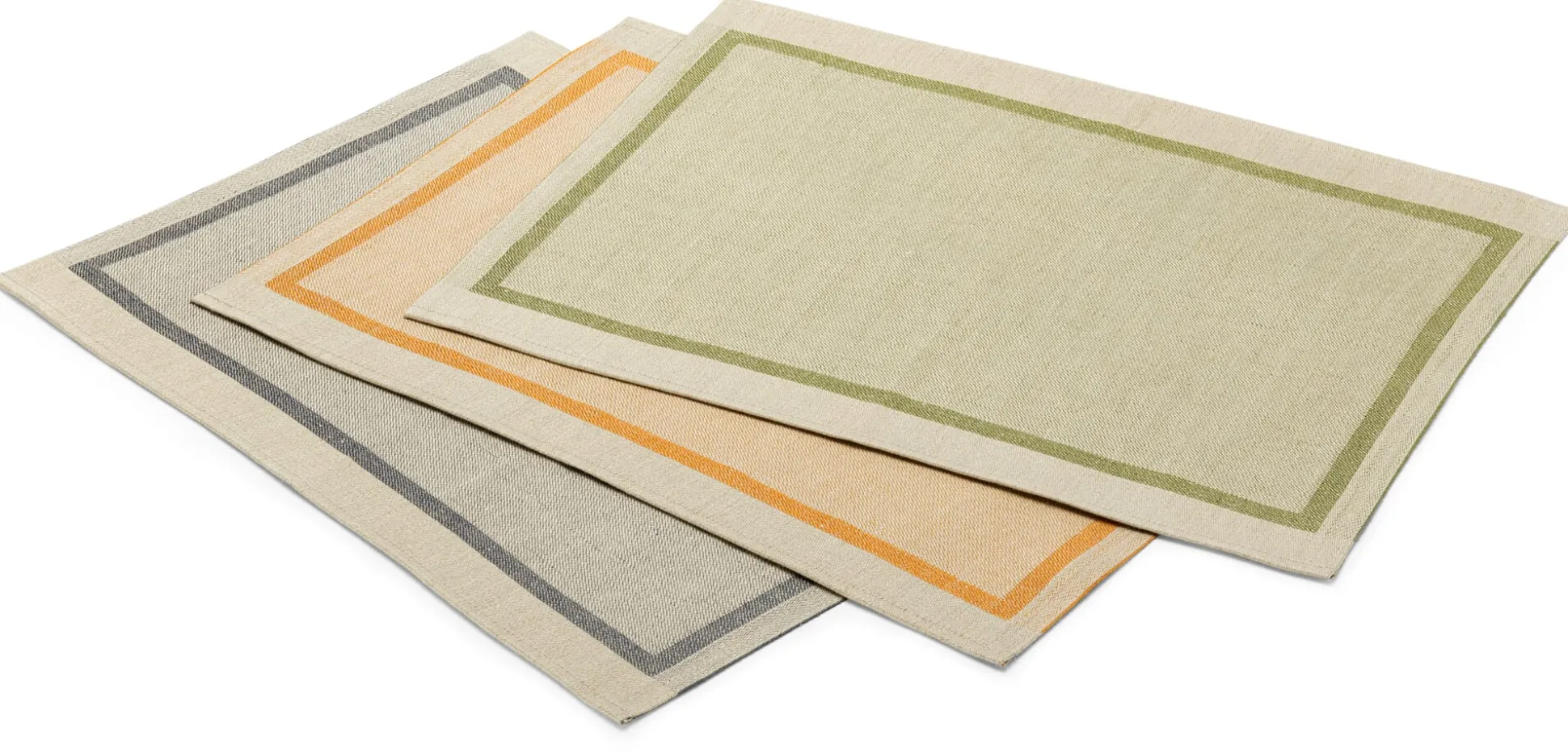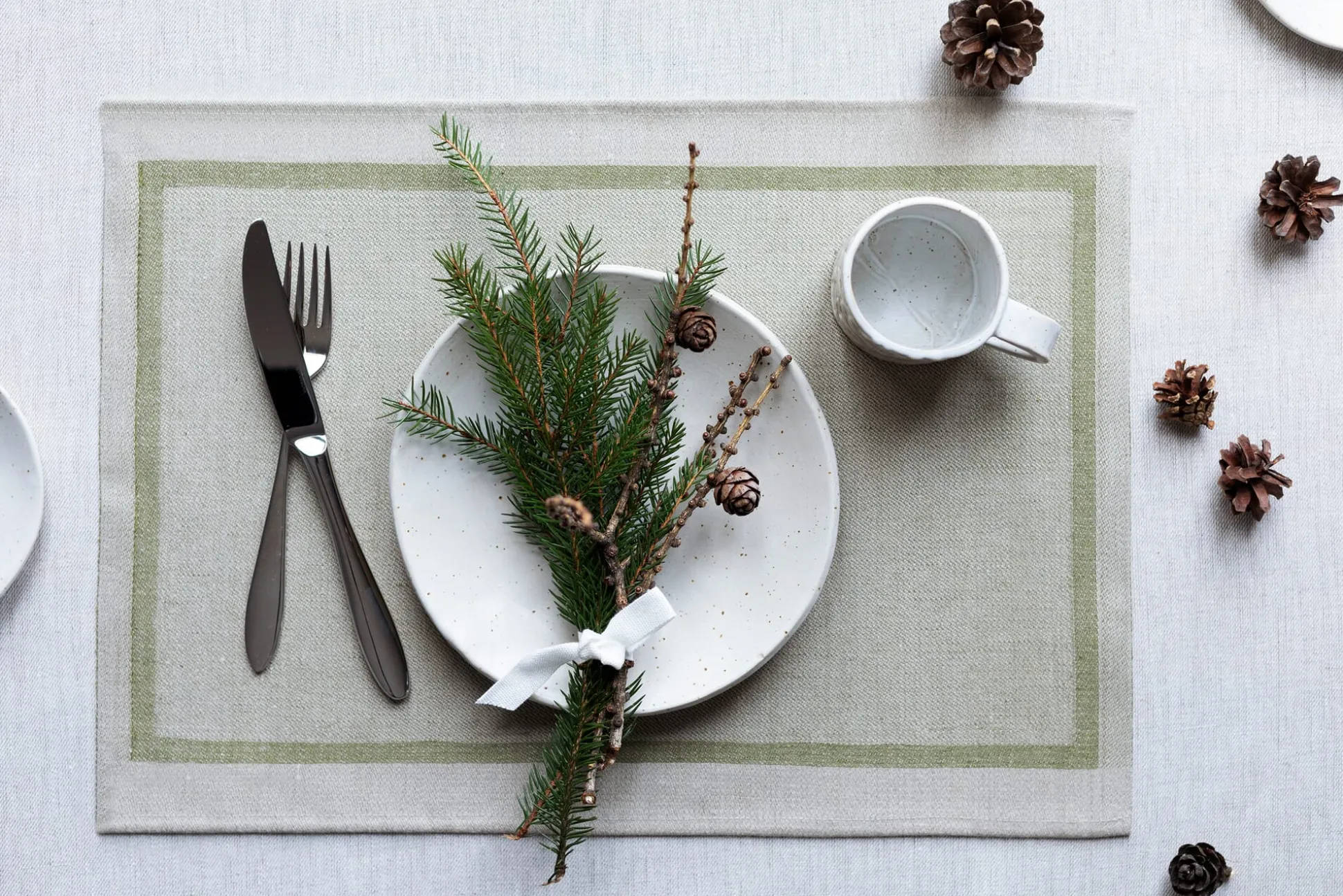 So schlicht das Dessin dieses Tischsets daherkommt, so aufwendig ist es gewebt und könnte es mit jedem floralen Jacquardmuster aufnehmen. Denn das Tischset ist auf ebenjenem Jacquardwebstuhl gefertigt wie die ornamentreichen Kollegen. Das zeigt sich darin, dass der Rahmen komplett gewebt ist und die Farben auf der Rückseite gegengleich erscheinen. Auch an den beiden Webkanten sieht man, dass hier mit Liebe zum Detail gearbeitet wurde: Sie entstehen, wenn der Webstuhl eigens für die jeweilige Breite des Webguts eingerichtet wird. Der Schussfaden wird beim Weben endlos weitergeführt und nicht einfach abgeschnitten, sodass lediglich noch die obere und die untere Schnittkante gesäumt werden müssen. Wie gewohnt verwendet Lapuan Kankurit ausschließlich Leinengarn aus bestem europäischem Langfaserflachs – mit dem Siegel Masters of Linen®.