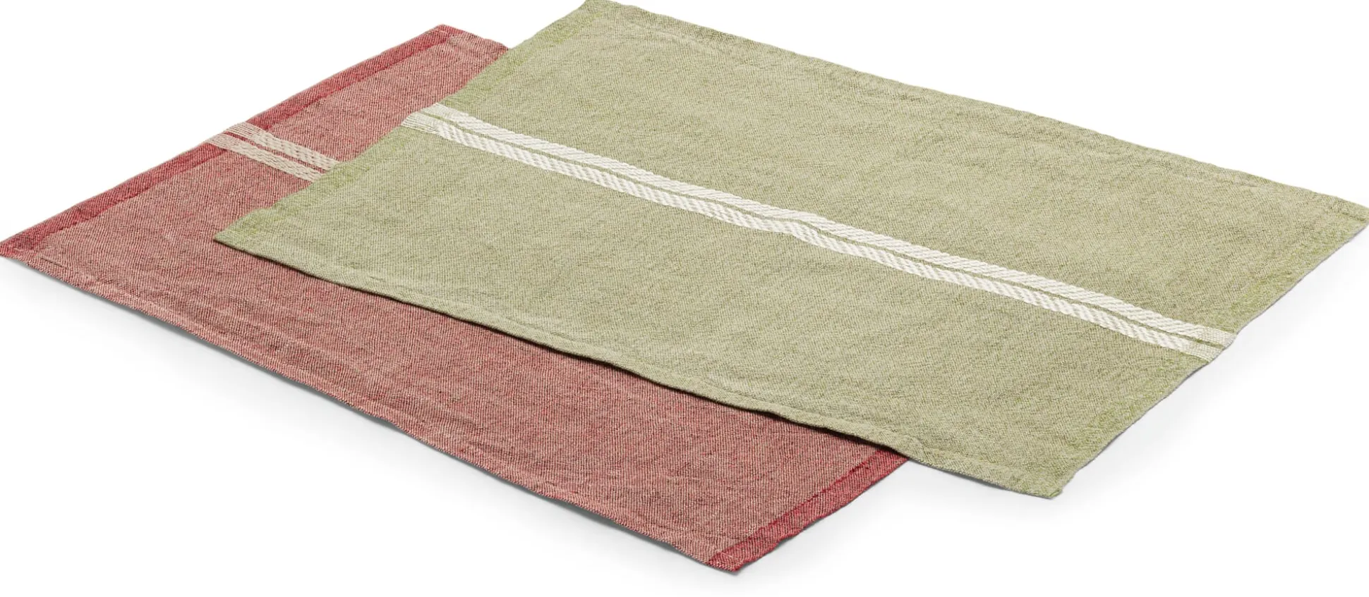 Auf Jacquardwebstühlen wird dieses schlichte Tischset aus reinem Leinen gewebt. Dies ermöglicht zwei Besonderheiten: Zum einen verfügt das Tischset über zwei Webkanten: Sie entstehen, wenn der Webstuhl eigens für die jeweilige Breite des Webguts eingerichtet wird. Der Schussfaden wird beim Weben endlos weitergeführt und nicht einfach abgeschnitten, sodass lediglich noch die obere und die untere Schnittkante gesäumt werden müssen. Zum anderen kann für die naturfarbenen Zierstreifen ein anderes, stärkeres Garn verwendet werden. So setzen sich die an Kordeln erinnernden Streifen markant vom melierten Fond ab. Der Melangeton entsteht aus der Verwendung verschiedenfarbiger Garne: In der Kette wird naturfarbenes Leinen, im Schuss farbiges Garn eingesetzt. Wie gewohnt verwendet Lapuan Kankurit ausschließlich Leinengarn aus bestem europäischem Langfaserflachs – mit dem Siegel Masters of Linen®.