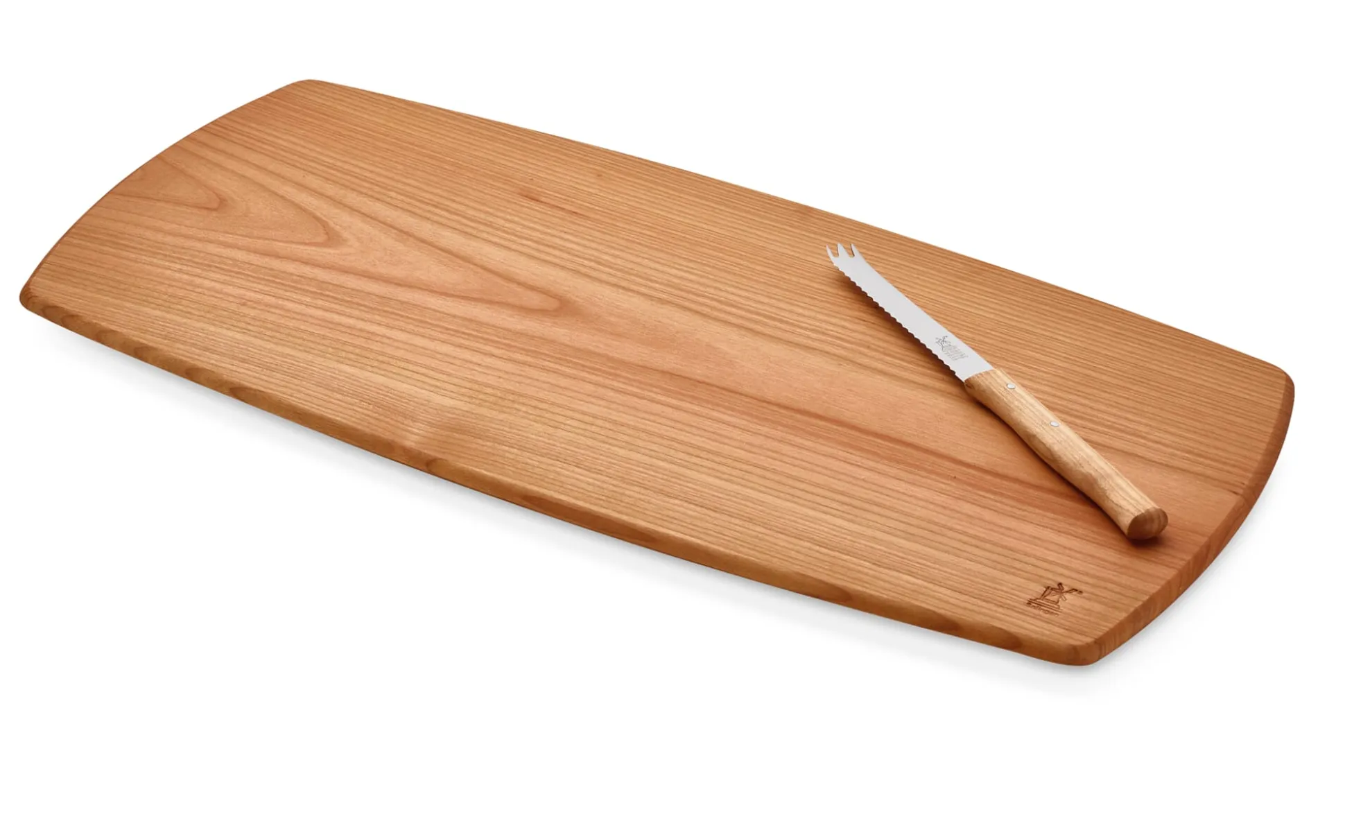 Die bayerische Brotzeit hat ihre eigenen Gesetze. Die fränkische oder die thüringische ebenso, oder das norddeutsche kalte Abendbrot, das nicht weniger deftig ausfällt, jedoch eine Reihe anderer Zutaten kennt. Ob nun Friesenkorn oder Bauernbrot, Räucherfisch oder Wurstspezialitäten, „Obazda“ oder „Gerupfter“ – gute Werkzeuge weiß zu schätzen, wer für die kleine Stärkung zwischendurch (oder als Hauptmahlzeit des Tages) gern einmal eine kalte Platte serviert. Wir bieten hier die passenden an: Schneid- und Servierbretter aus Holz in unterschiedlichen Größen sowie zwei Messer mit besonderer Klingenform. Sämtliche Holzteile bestehen aus gedämpftem und geöltem Kirschbaumholz. Die Utensilien kommen aus Solingen und entstehen überwiegend in Handarbeit in der Windmühlenmesser-Manufactur Robert Herder.