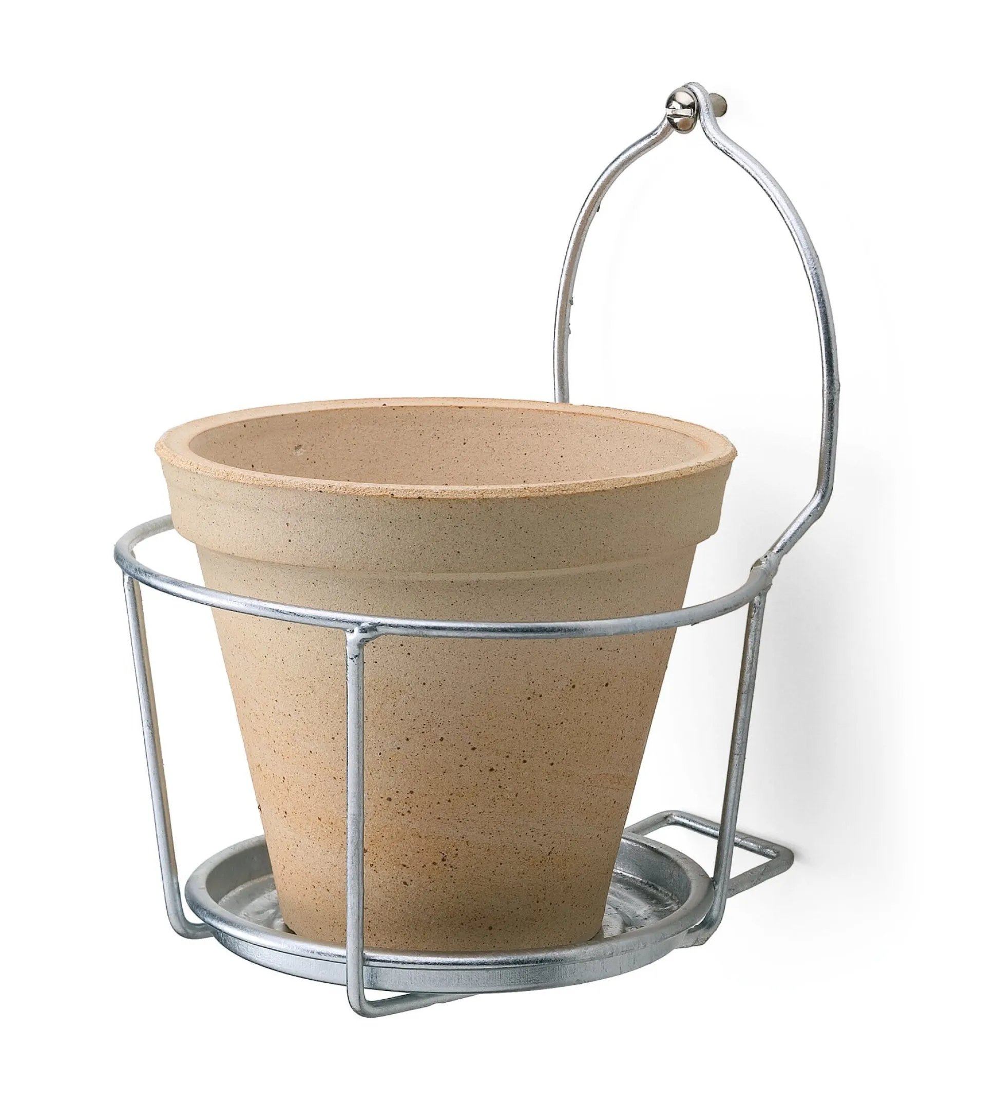Einen ganzjährigen Aufenthalt im Freien übersteht dieser Topfhalter problemlos: Er ist aus Stahl gefertigt und mit einer dicken Zinkschicht versehen. Zwei weitere Details sind bemerkenswert: Ein Abstandhalter hält die Halterung stets in der Waage; der fest angebrachte Untersetzer fängt überschüssiges Gießwasser auf und verhindert somit ein rasches Austrocknen der Erde im Topf. Unser Tipp: Der verzinkte Topfhalter eignet sich ebenso gut dazu, an lauen Sommerabenden auf der Terrasse ein Windlicht im passenden Format in Szene zu setzen.