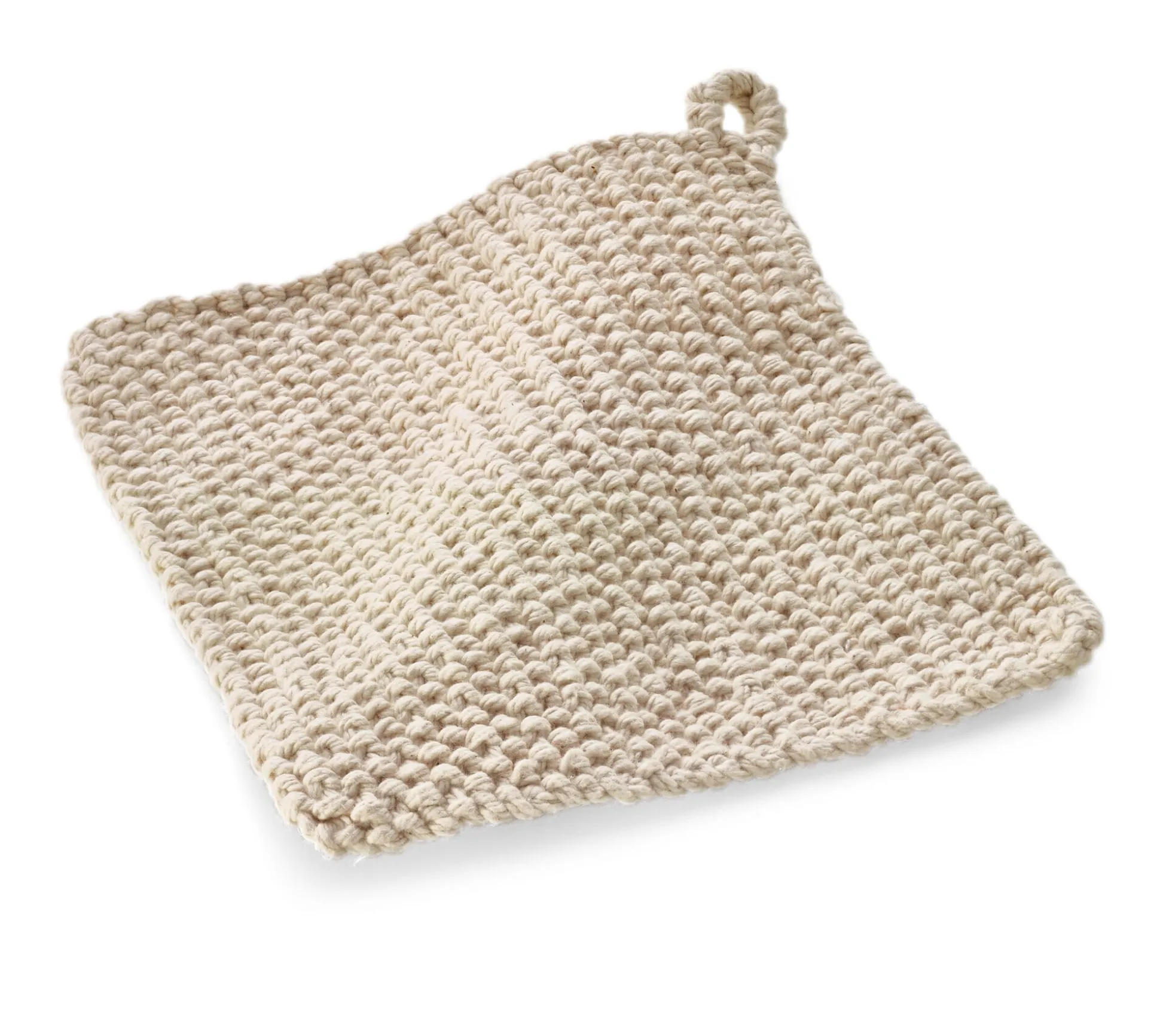 19 x 19 cm: Bedingt durch Garn und Muster ist dieser Topflappen etwas dicker und daher besonders für sehr heiße Töpfe und Auflaufformen geeignet.