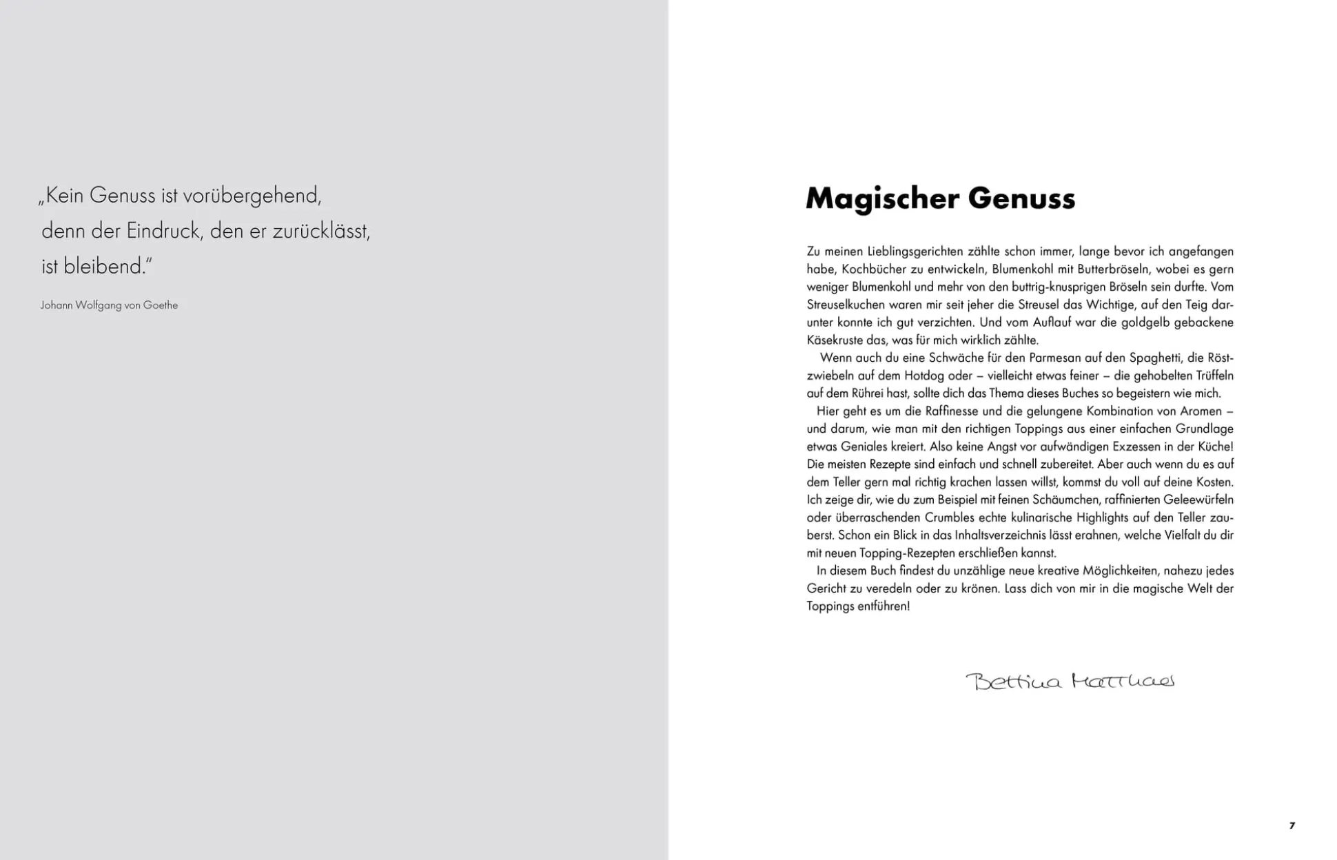 Im Fokus dieses Buches stehen jedoch die raffinierten Toppings, die mit Geschmack, Optik und Textur brillieren. Und weil Platzverschwendung so gar nicht zur Bestseller-Kochbuchautorin Bettina Matthaei und zu ihren fein ausgewogenen Rezepten passt, serviert sie Toppings immer mit spannenden Unterlagen, die für sich genommen schon eines Kochbuchs würdig sind. Ein Genuss für die Geschmacksnerven!
