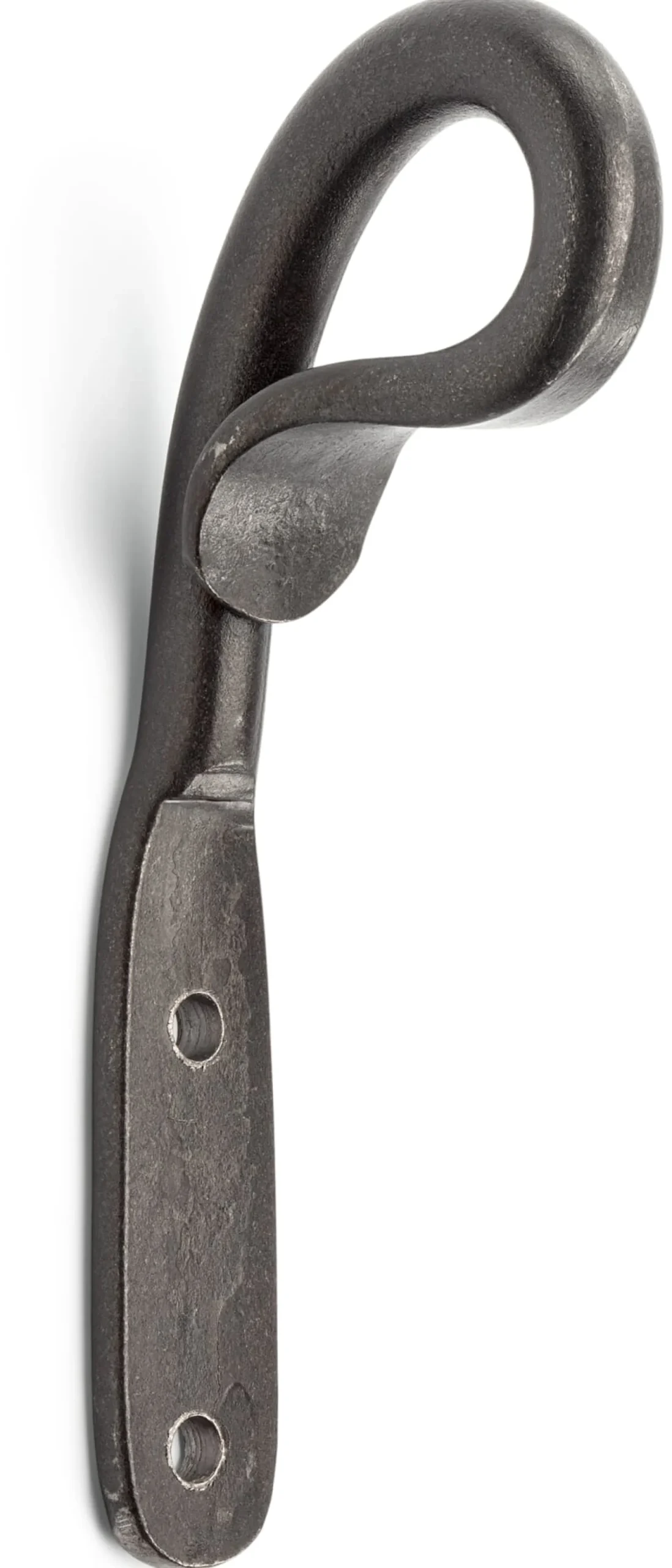 Stahl, geschmiedet und klar lackiert. Länge 15,5, Breite 2 cm, Ausladung 6,5 cm. Gewicht 200 g. Hergestellt in Estland. Lieferung ohne Schwenkarm und Vorhang.