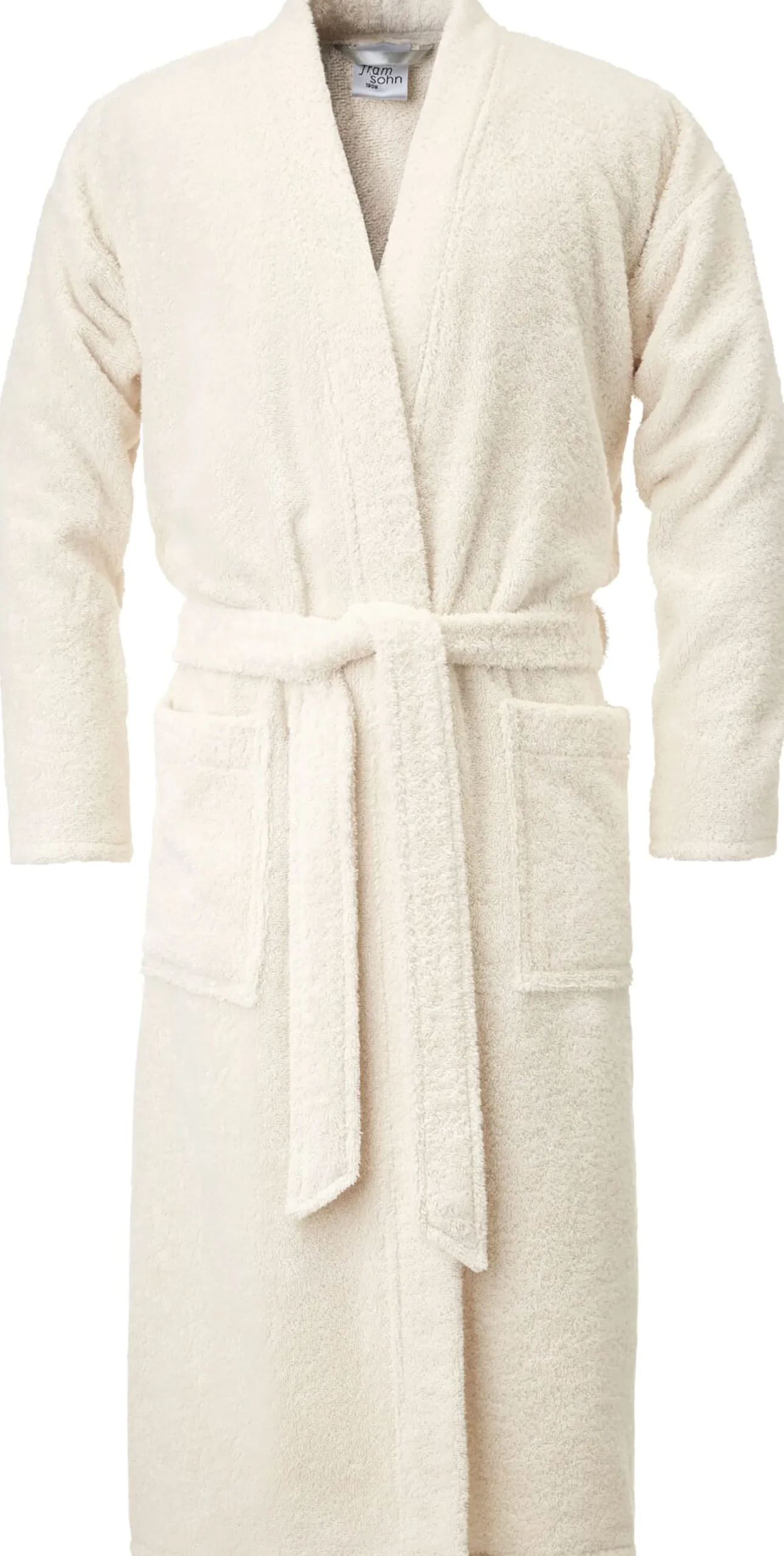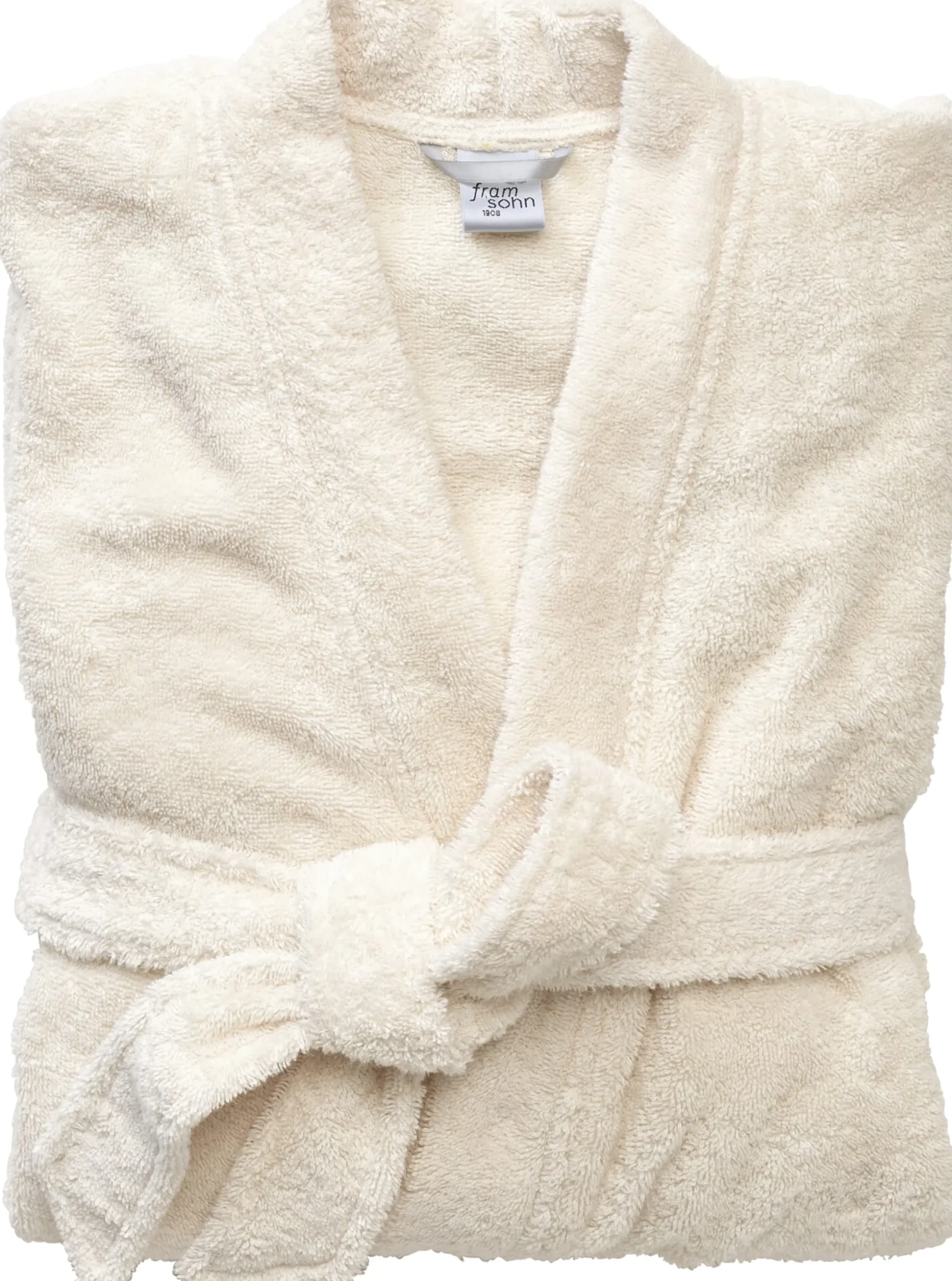 Aus einem schwergewichtigen Doppelfrottier mit gleichwertigen Innen- und Außenseiten konfektioniert Framsohn diesen Bademantel mit einem Bindegürtel aus Oberstoff und zwei aufgesetzten Taschen. Man sieht ihm schon auf dem Foto an, wie bequem und kuschlig er ist. Die verwendete Baumwolle stammt aus kontrolliert biologischem Anbau.