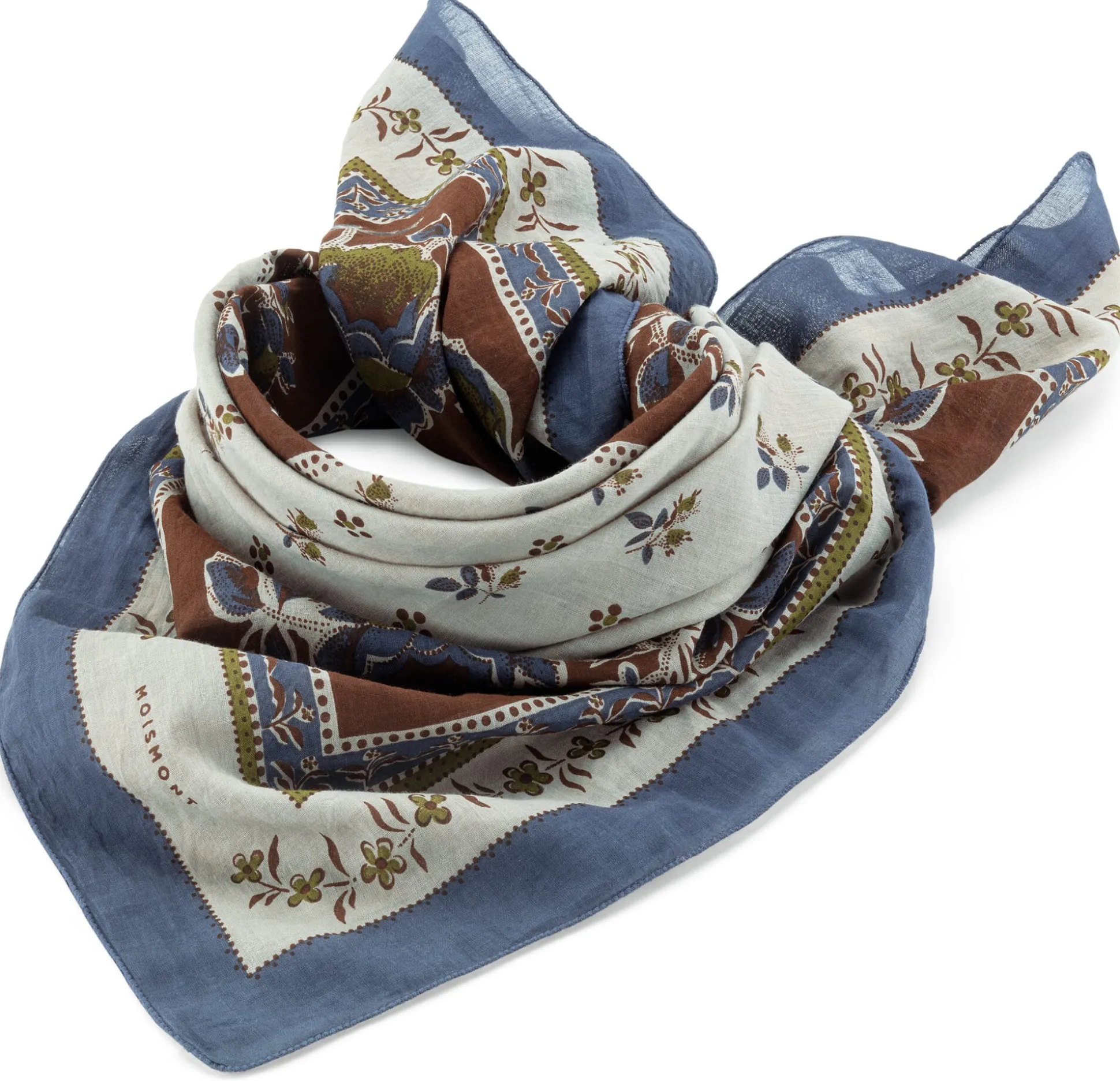 Hinter dem in der französischen Picardie ansässigen Label Moismont stehen Martine und Jacques Bijvoet. Mit ihrer Mode setzen sich die beiden für Authentizität, Traditionen und Werte ein. Es verwundert daher nicht, dass in ihren Schals und Stolen, Kleidungsstücken und Taschen französisches Textildesign und traditionelles indisches Webhandwerk zusammenfinden. Immerhin hat der ursprüngliche Schal (der nach unserem Verständnis eher wie eine Stola getragen wird) einst seinen Weg vom indischen Subkontinent nach Europa gefunden. Und bis heute ist diese Schalkultur in Indien sehr lebendig: Garnfärbe-, Web- und Drucktechniken werden dort von Generation zu Generation weitergegeben – in drei sorgfältig unterschiedenen Berufen, von denen jeder sein eigenes, einzigartiges Know-how besitzt und hütet.