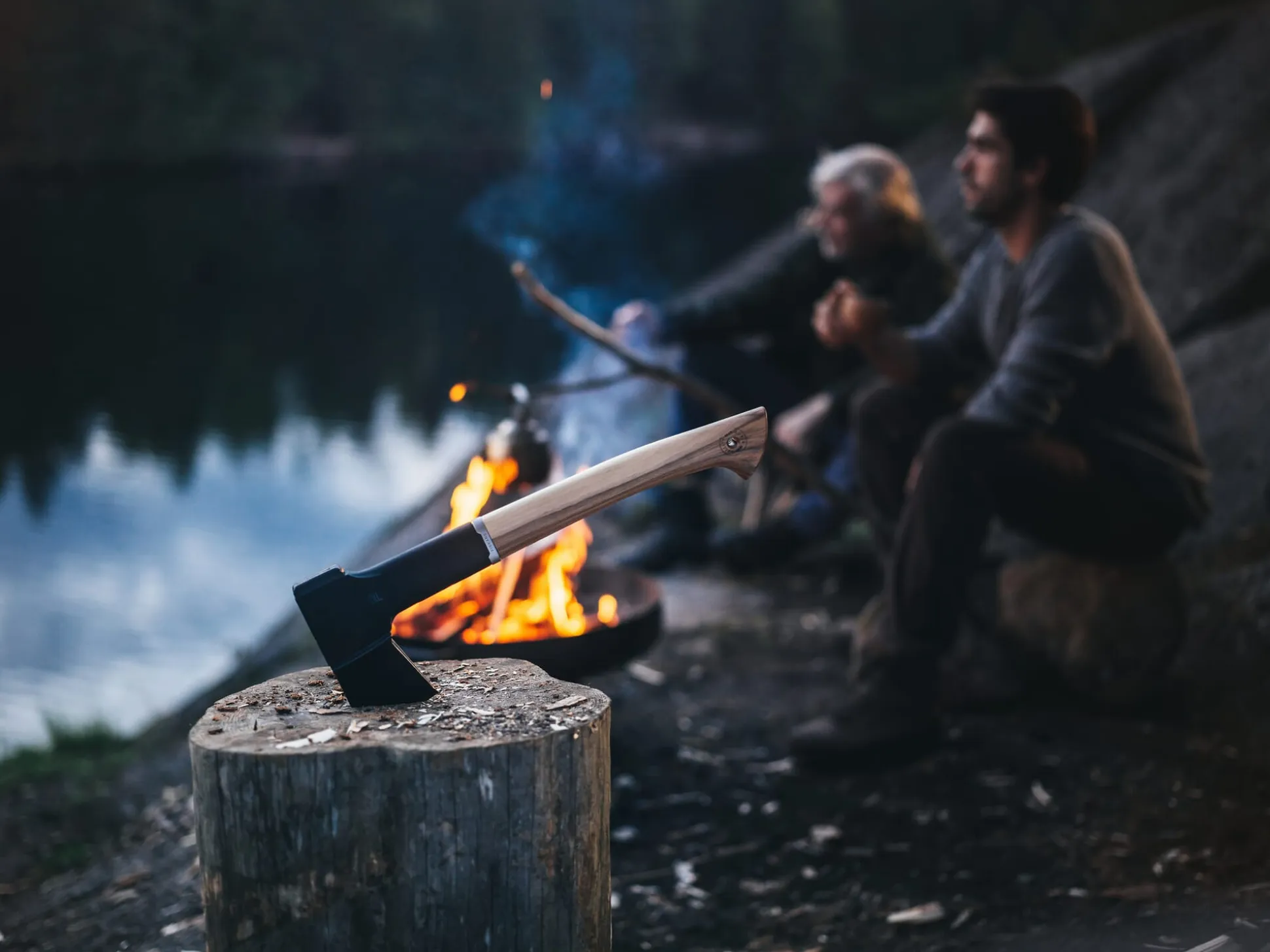 Universalaxt NORDEN – zum einhändigen Spalten und Hacken von Holzscheiten. Der Stiel aus amerikanischem Hickoryholz ist dank der FiberComp™-Konstruktion nahezu unzerbrechlich und untrennbar mit dem Axtkopf verbunden. Diese Konstruktion aus einem speziellen Kunststoffmaterial, die die Klinge mit dem hölzernen Schaft der Axt verbindet, dient als Überschlagschutz und „dämpft“ Stöße ab. Das Blatt aus Kohlenstoffstahl ist mit einer schwarzen Beschichtung versehen, wie man sie aus der Veredelung von Werkzeugen kennt: Als Verschleißschutz wird die Oberfläche noch haltbarer und widerstandsfähiger und die Schnitthaltigkeit wird erhöht.
