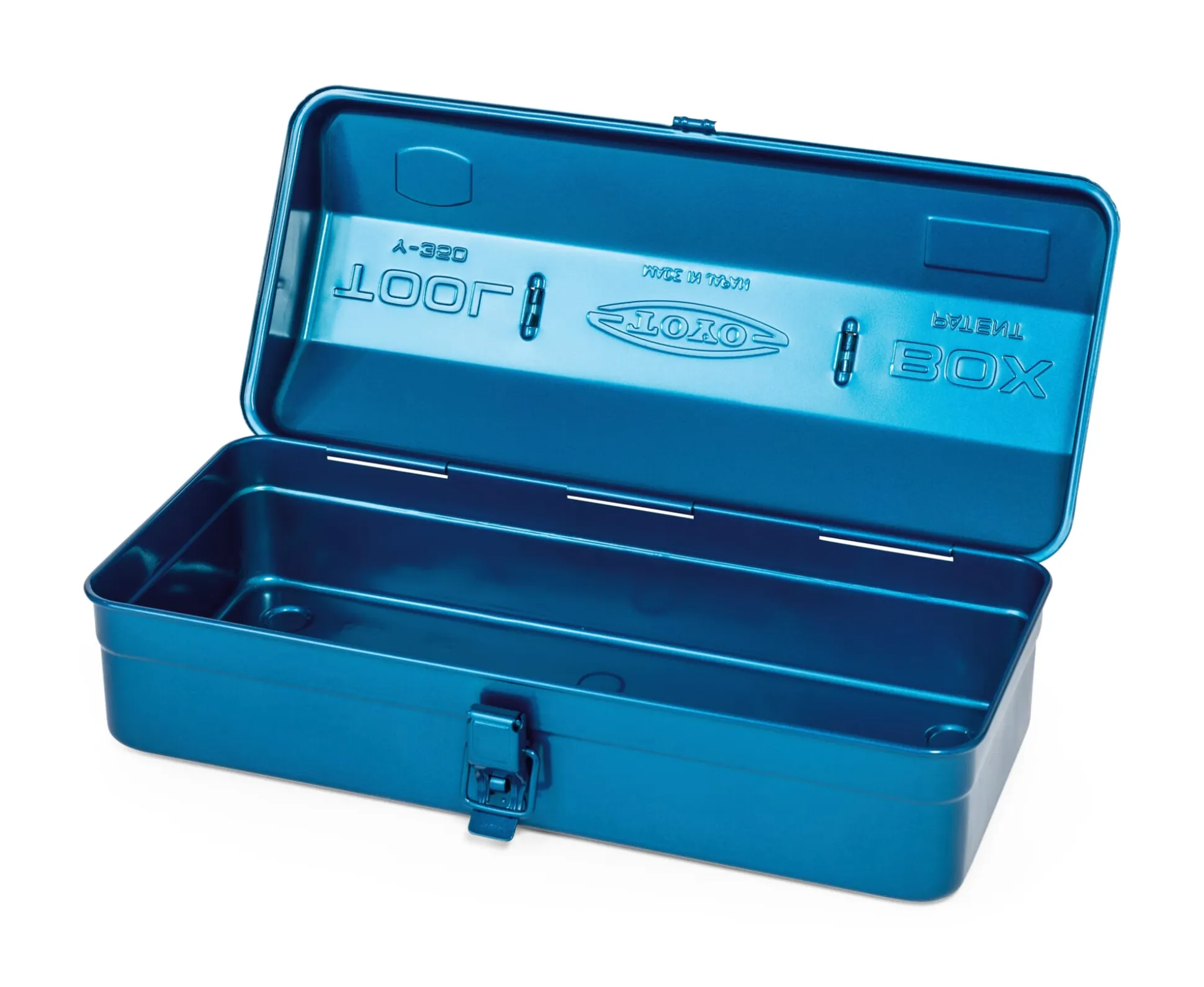 Toyo Steel aus Osaka, Japan, fertigt diese Werkzeugkisten aus Stahl, unverwüstlich in ihrer Qualität und von perfekter Proportion. Die klassische Form mit in den gewölbten Deckel integriertem Tragegriff dient nicht nur der Unterbringung von Werkzeug, sondern vielerlei Zwecken in Haushalt und am Arbeitsplatz. Verschließbar mit präzise sitzendem Schnappverschluss.