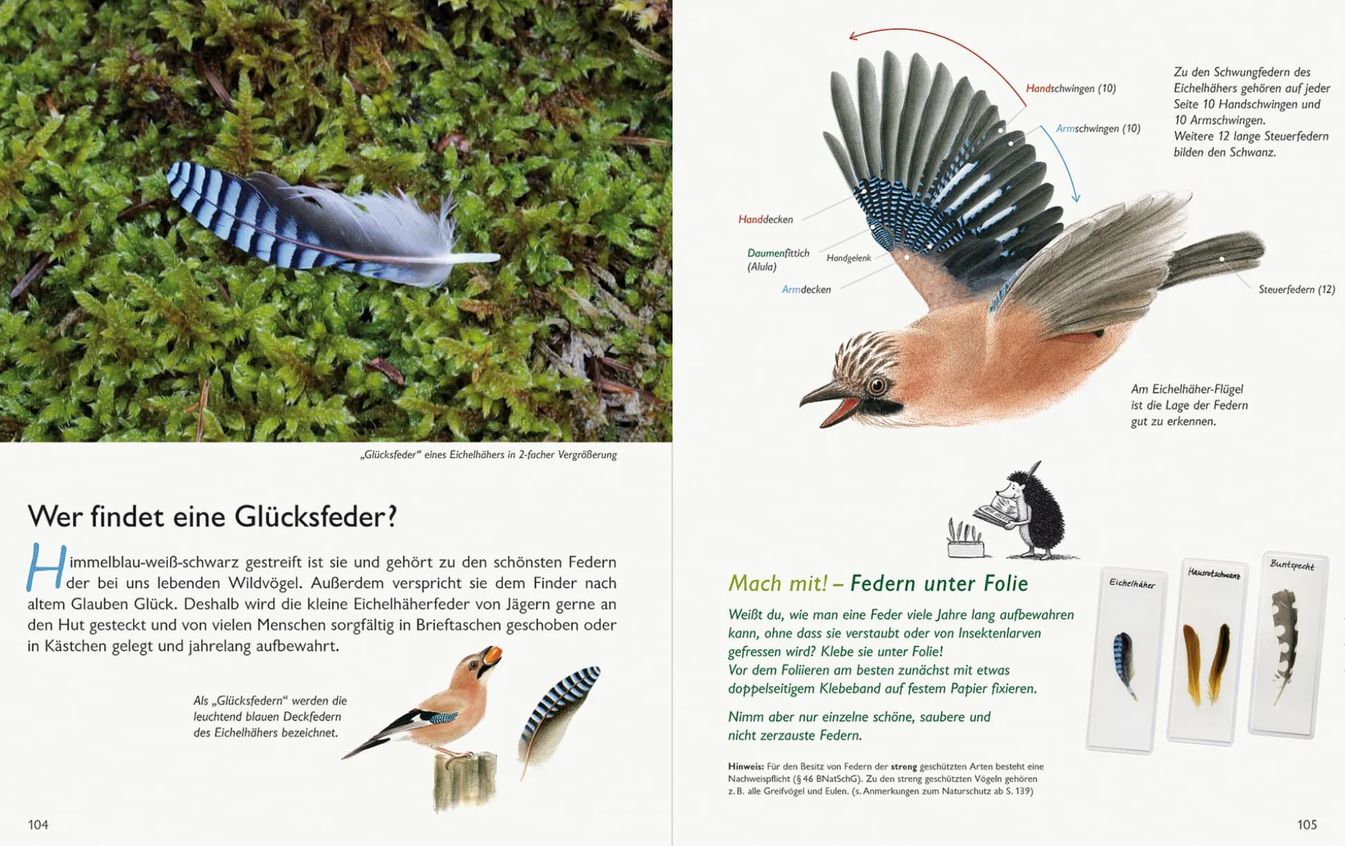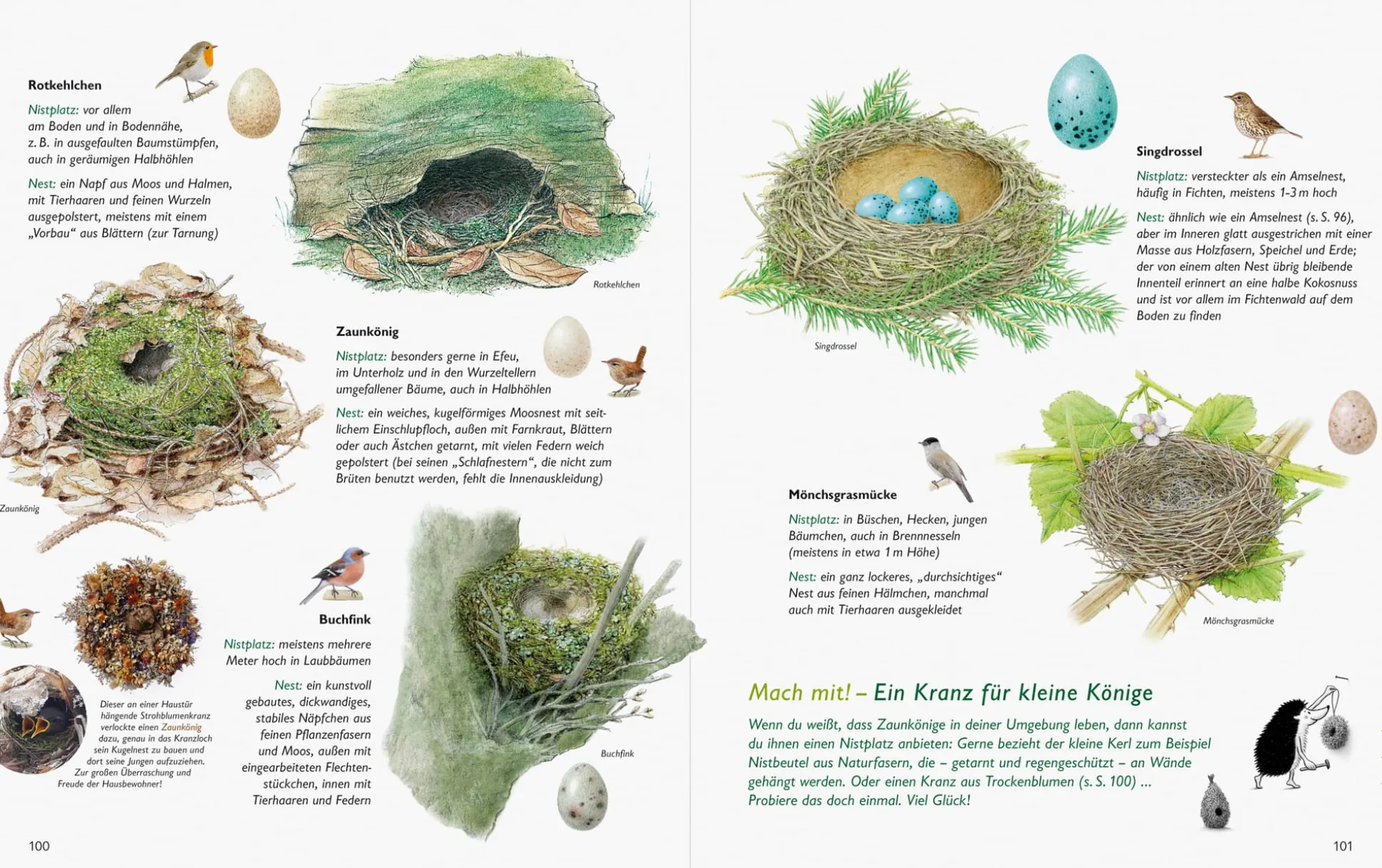 Wer kennt sie mit Namen: Haselmaus und Hufeisennase, Waldeidechse oder Mönchsgrasmücke? Wer möchte wissen, wie die Spur eines springenden Eichhörnchens aussieht, welche Vögel schon im Januar singen oder welche Krötenrufe wie Glocken klingen? Vom Rothirsch bis zum Feuersalamander vermittelt dieses reich illustrierte Naturbuch Kindern und auch Erwachsenen grundlegende Artenkenntnisse über die heimischen Säugetiere, Vögel, Reptilien und Amphibien und lockt mit vielfältigen Mitmachtipps raus in die Natur. Gipsabdrücke von Tierspuren herstellen, Nüsse knacken ohne Knacker, Vögel beobachten und vieles mehr: Ein kleiner Igel zeigt, wie’s geht. Kurz: Ein außergewöhnlich schönes Bestimmungs- und Entdeckungsbuch mit spannendem Naturwissen für Jung und Alt!