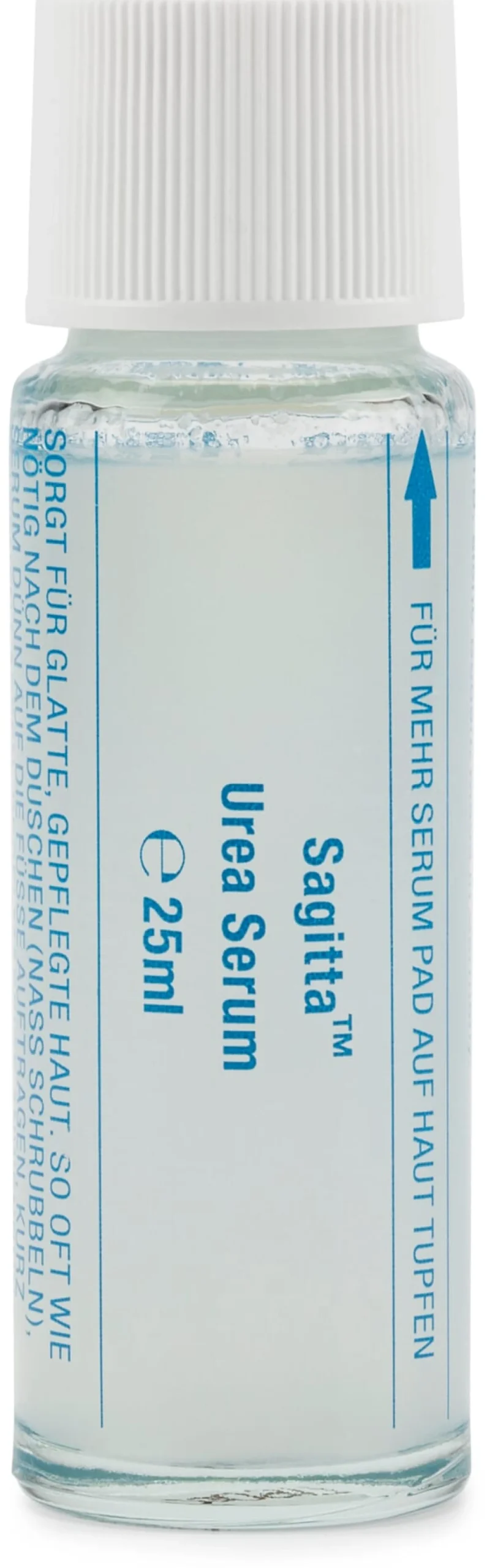 Die Urea-Fußpflege ist ein leichtes, aber gehaltvolles Serum, das sehr schnell einzieht: Im Grunde können Sie direkt nach dem Auftragen die Strümpfe anziehen – damit ist das größte Hindernis für die regelmäßige Fußpflege ausgeräumt: kein Warten, keine Flecken, keine gecremten Hände, denn das Serum wird einfach mittels Pad aufgetragen. Um die Füße geschmeidig zu erhalten, genügt es, das Urea-Serum alle zwei Tage dünn aufzutragen. Wenn sich bereits Hornhaut gebildet hat, sollte das Serum morgens und abends, bei rissiger Haut auch gern zwischendurch aufgetragen werden. Befeuchten Sie das Nagelbett der Zehen ebenfalls mit dem Urea-Serum: In einer weichen Umgebung können die Nägel gleichmäßiger wachsen. Und bringen Sie etwas Geduld mit, je stärker die Hornhaut und je rissiger sie ist, desto länger dauert es. Ein bis zwei Monate sollten Sie also mindestens durchhalten. Bei täglich zweimaliger Anwendung reicht das Serum etwa einen Monat.