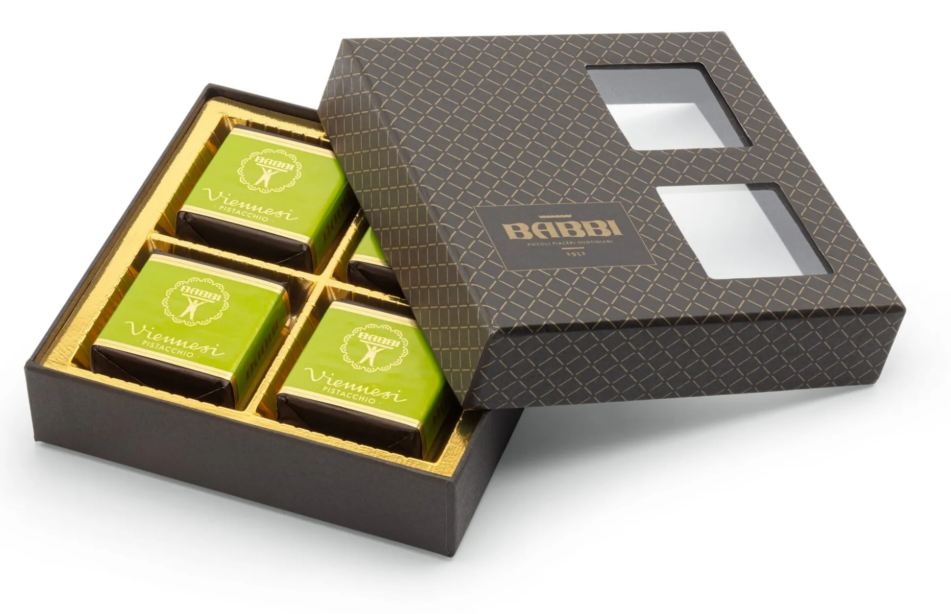 Das Süßwarenunternehmen Babbi wurde 1952 von Attilio Babbi in der Romagna gegründet, einer Region mit reicher gastronomischer Kultur. Vor allem mit Eistüten und Waffeln machte sich Babbi rasch einen Namen. Kein Wunder, setzte man doch von Beginn an konsequent auf hochwertige natürliche Rohstoffe und akkurate handwerkliche Verarbeitung. Bald schon folgten etliche weitere Konditoreispezialitäten – darunter auch die köstlichen, mehrschichtigen Viennesi.