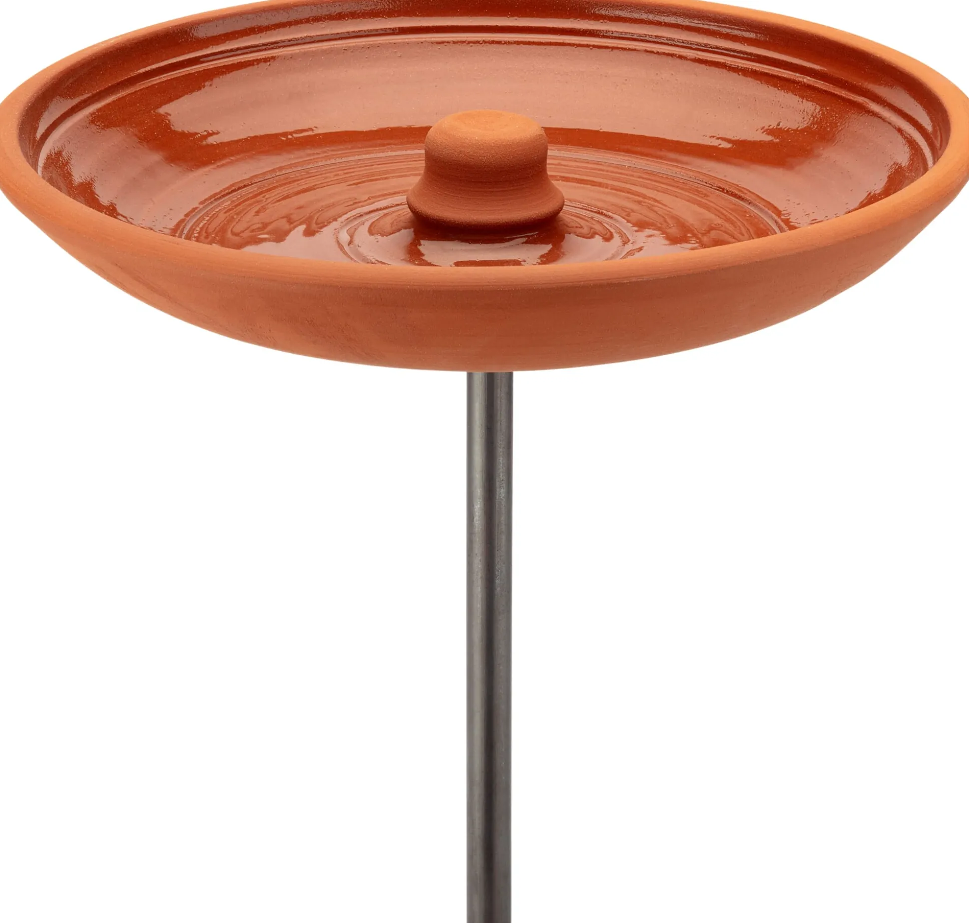 Die Schale ist aus Keramik gefertigt. Damit nichts hindurchsickern kann, ist sie an der Innenseite glasiert und somit wasserfest, die Glasur erleichtert außerdem die gelegentliche Reinigung. Drei umlaufende Rillen bieten den gefiederten Tieren, vor allem den kleineren, die vom Rand aus schlecht trinken können, Rutschsicherheit. In der Nähe des Sitzplatzes aufgestellt, gibt die Tränke Ihnen wiederum die ideale Möglichkeit zur Beobachtung der Tiere.