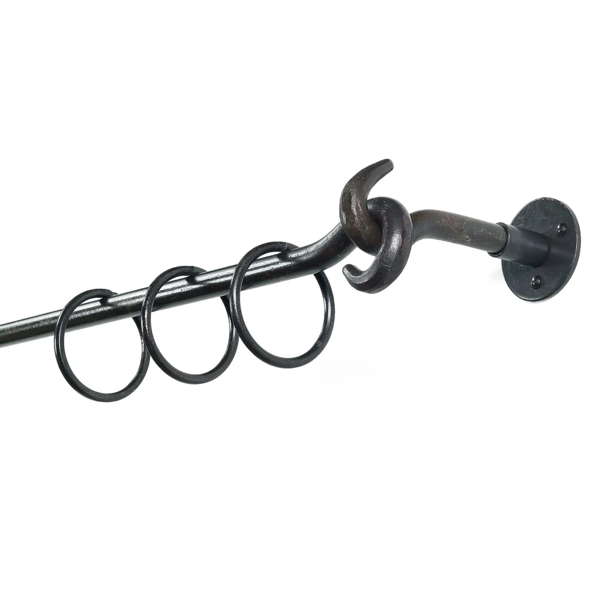 Komplettgarnitur aus Stahl geschmiedet, bestehend aus Stange, Trägern und Gardinenringen aus Massivstahl. Die Wandhalterungen sind auch ohne Wandteller (dann mit M8-Stockschraube) zu montieren.