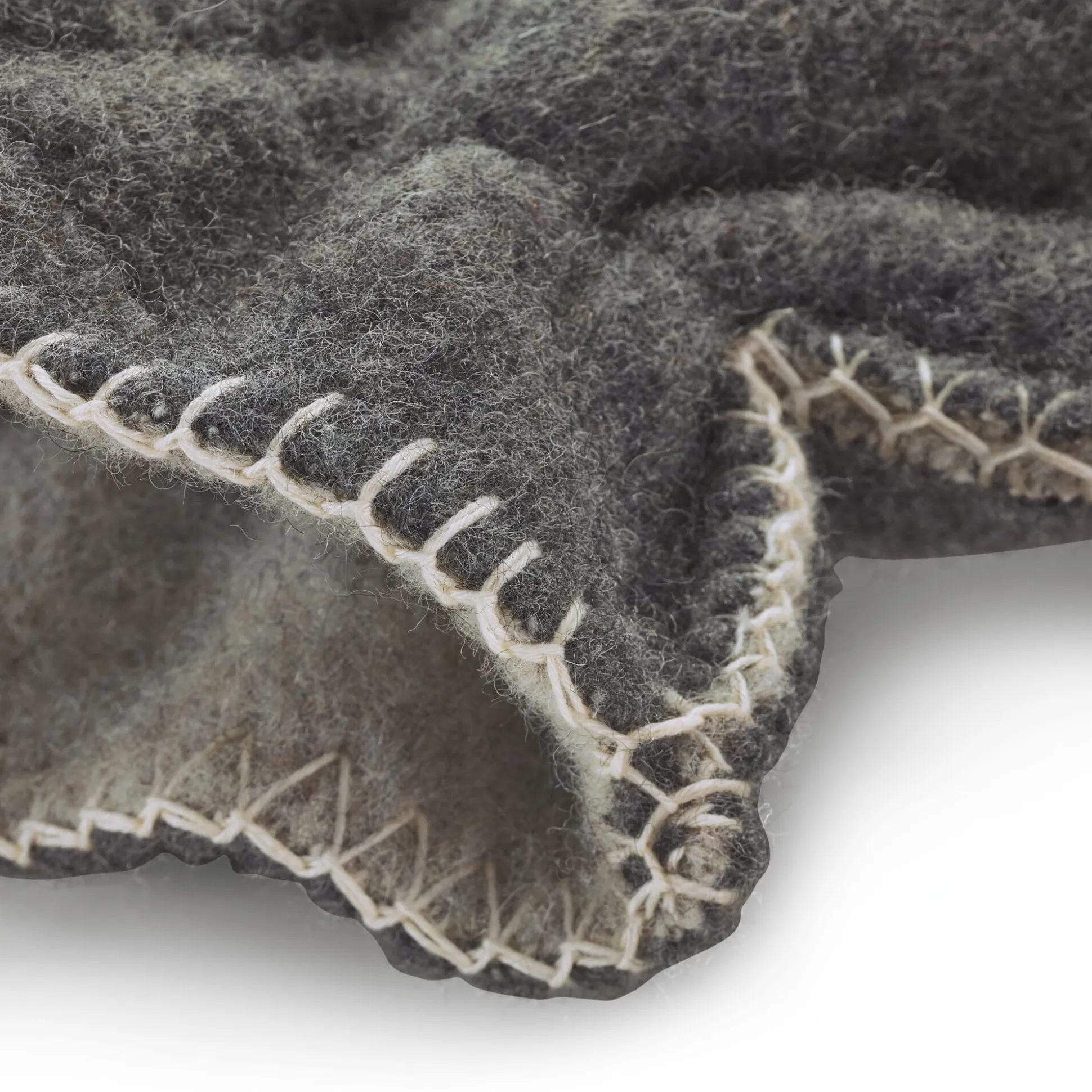 Der Wärmflaschenbezug aus Doubleface entsteht vollständig in Deutschland – vom Spinnen über das Weben und Färben bis hin zum Waschen, Rauen und Ketteln –, auch die Schurwolle stammt von deutschen Schafen. Um größeres Volumen und noch mehr Weichheit zu erzeugen, wird die Oberfläche des Gewebes auf mit Naturdisteln bestückten Rollkarden-Raumaschinen zusätzlich angeraut. Die Kanten und die abgerundeten Ecken sind sorgfältig mit einem festen Kettelstich versehen. Passend zum Wärmflaschenbezug finden Sie in unserem Sortiment auch eine Decke aus dem gleichen Material an.
