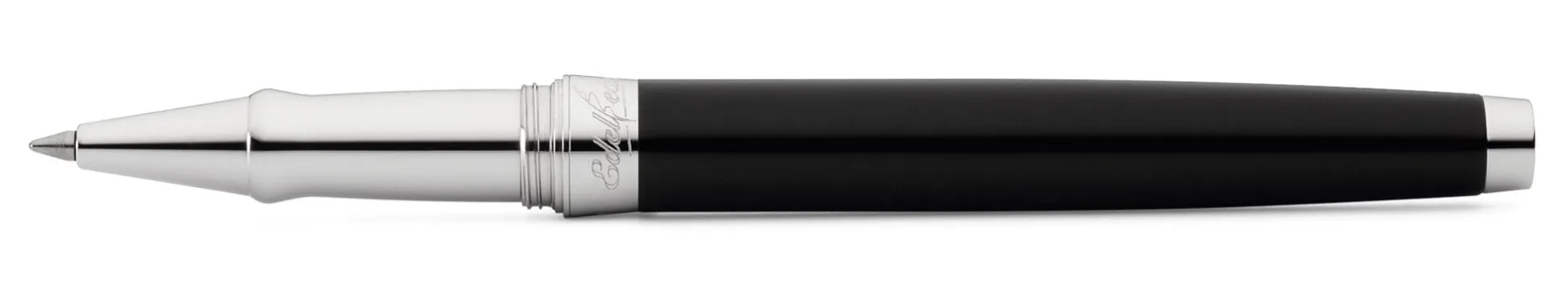 Ein Tintenroller aus der Schreibgeräteserie Edelfeder, die einer Kooperation von Waldmann mit der Süddeutschen Zeitung entsprungen ist. Korpus aus Messing, mehrfach lackiert und hochglanzpoliert. Griffstück aus Messing, rhodiniert. Guillochierte Schraubkappe mit Gravurfeld (60 × 6 mm) aus 925er Silber, nicht beschichtet. Clip aus einer Kupfer-Beryllium-Legierung, rhodiniert. Tintenmine mit Edelstahlspitze und Keramikkugel, Strichstärke 0,7 mm. Länge geschlossen 13,8 cm, Länge schreibfertig 12,2 cm. Gewicht 40 g. Mit Silberputztuch. Als Ersatzminen bieten wir die Waldmann Tintenminen (Bestellnummern 15458 und 15459) an.