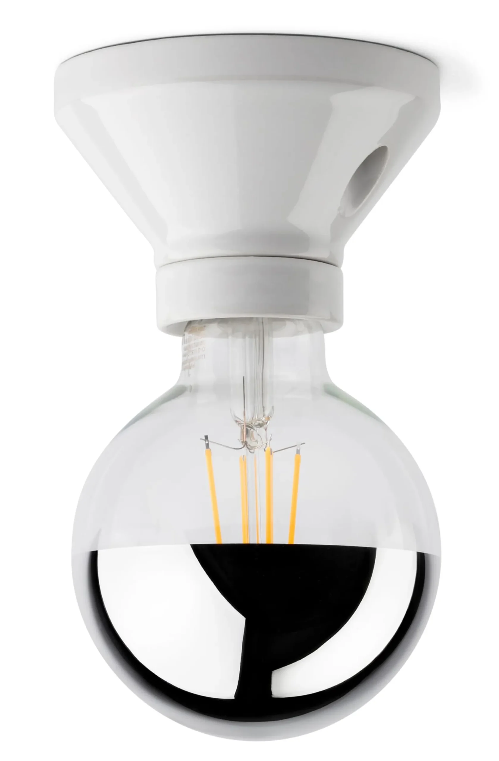 Formschöne E27-Fassung zur Aufnahme von Lampen unterschiedlicher Technik und Lichtstärke. Der konisch verlaufenden Körper aus Porzellan hat sichtbare Öffnungen für die Montageschrauben. Einsetzbar als Wand- oder Deckenleuchte für eine sachliche, aber effektvolle Beleuchtung.