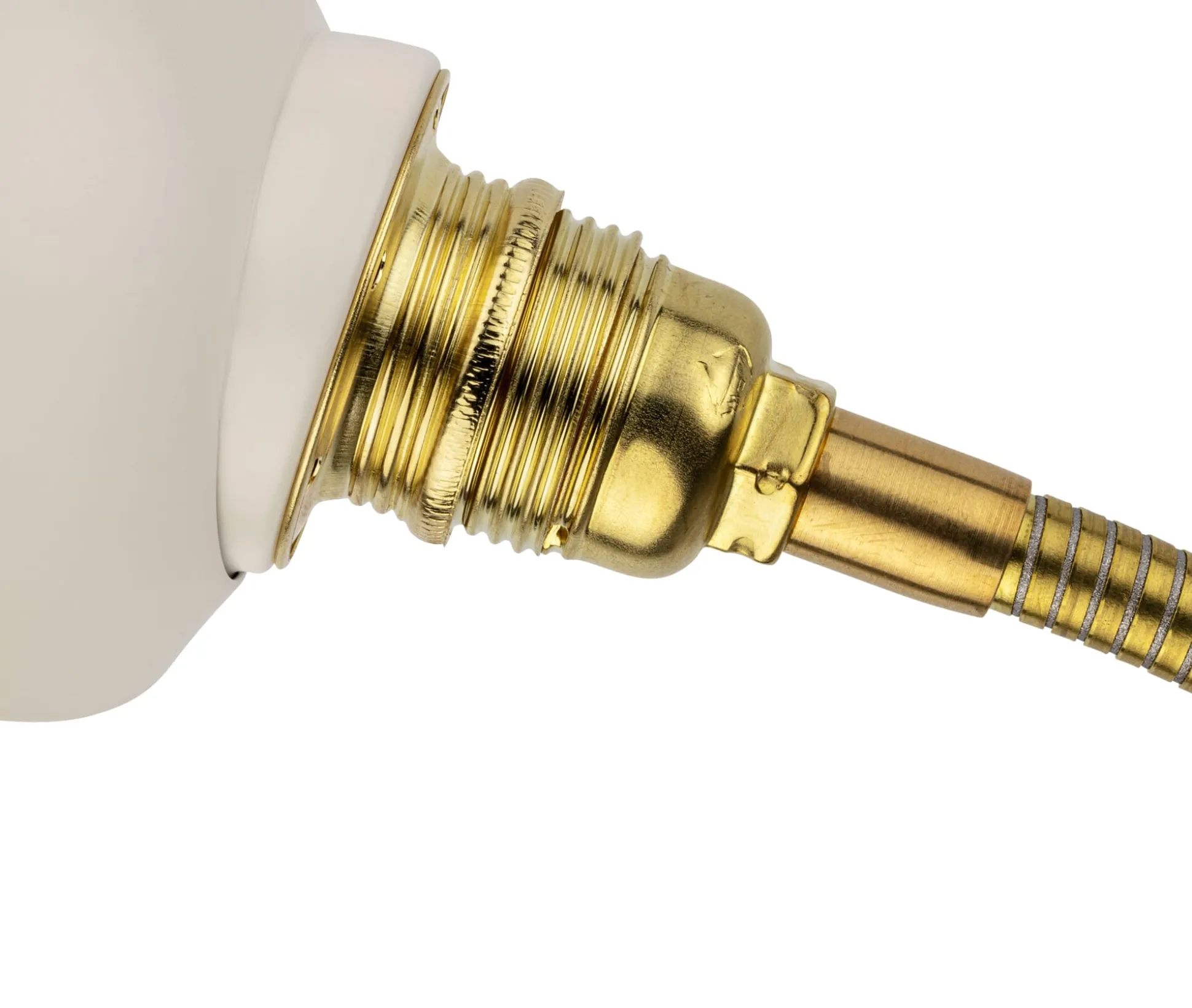 Flexibler Arm (Länge 39,5 cm) aus Messing und Reflektor (Ø 9 cm) aus Stahl, lackiert. Wandhalterung (Ø 9 cm) Stahl, lackiert. Metallfassung E14 (max. 42 W). Gewicht 500 g. Lieferung ohne Leuchtmittel und Befestigungsmaterial.
