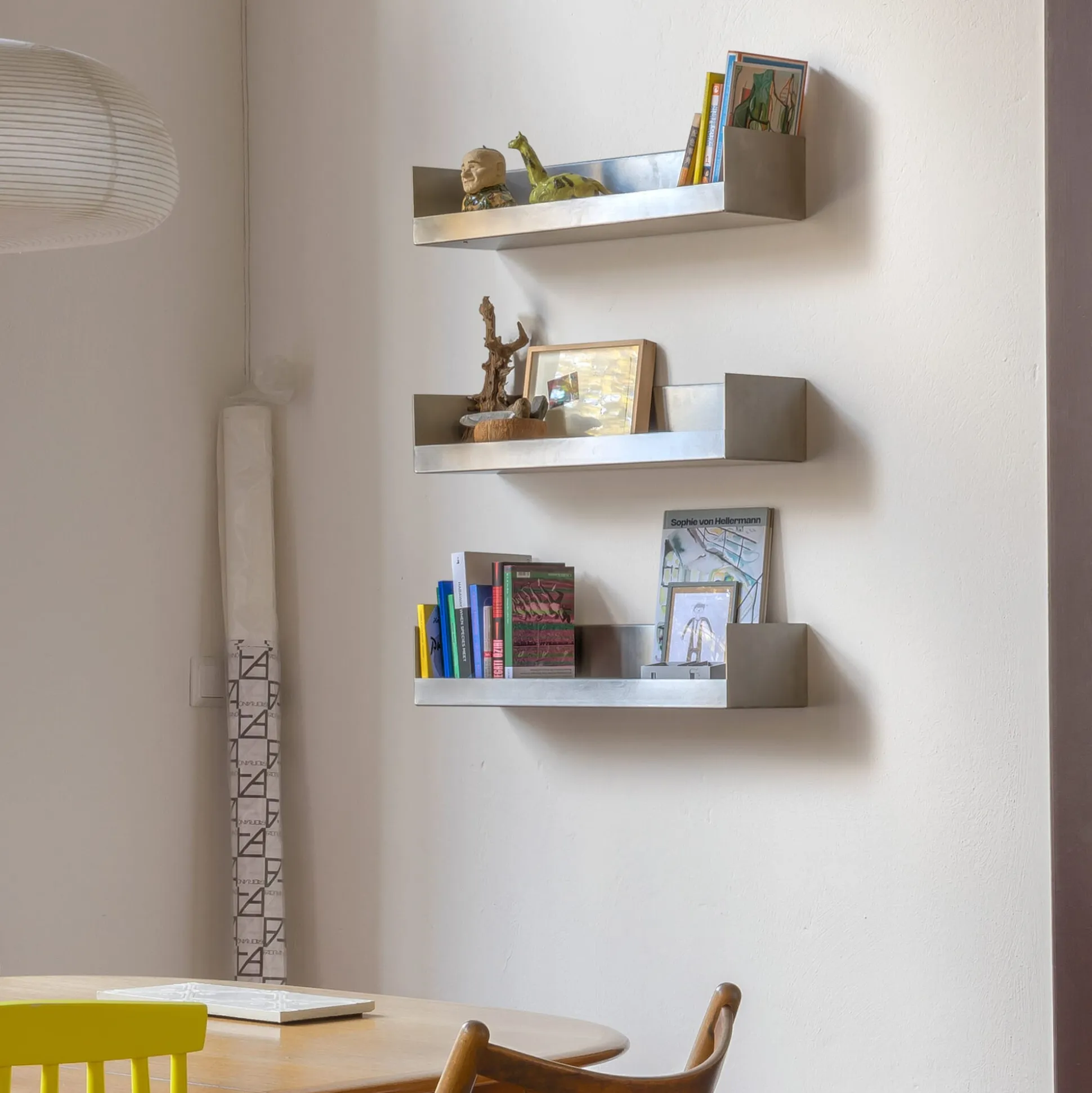 BOKS für Bücher, Arbeitsgerät, Küchenzeug und Flurkram. In dieser Version aus Edelstahl mit industrieller Ausstrahlung. Dieses Regal ist kräftig und kompakt, einzeln einsetzbar aber auch mehrfach über- oder nebeneinander. Ungewöhnlich ist seine wannenförmige Ausformung, die allseitig das Herausrutschen von untergebrachtem Inhalt verhindert und zudem für eine hohe Belastbarkeit sorgt. Das Regal wird mit einer separaten Montageleiste geliefert, die einfaches Anbringen und stabilen Halt gewährleistet. Schrauben und Standarddübel sind im Lieferumfang enthalten.