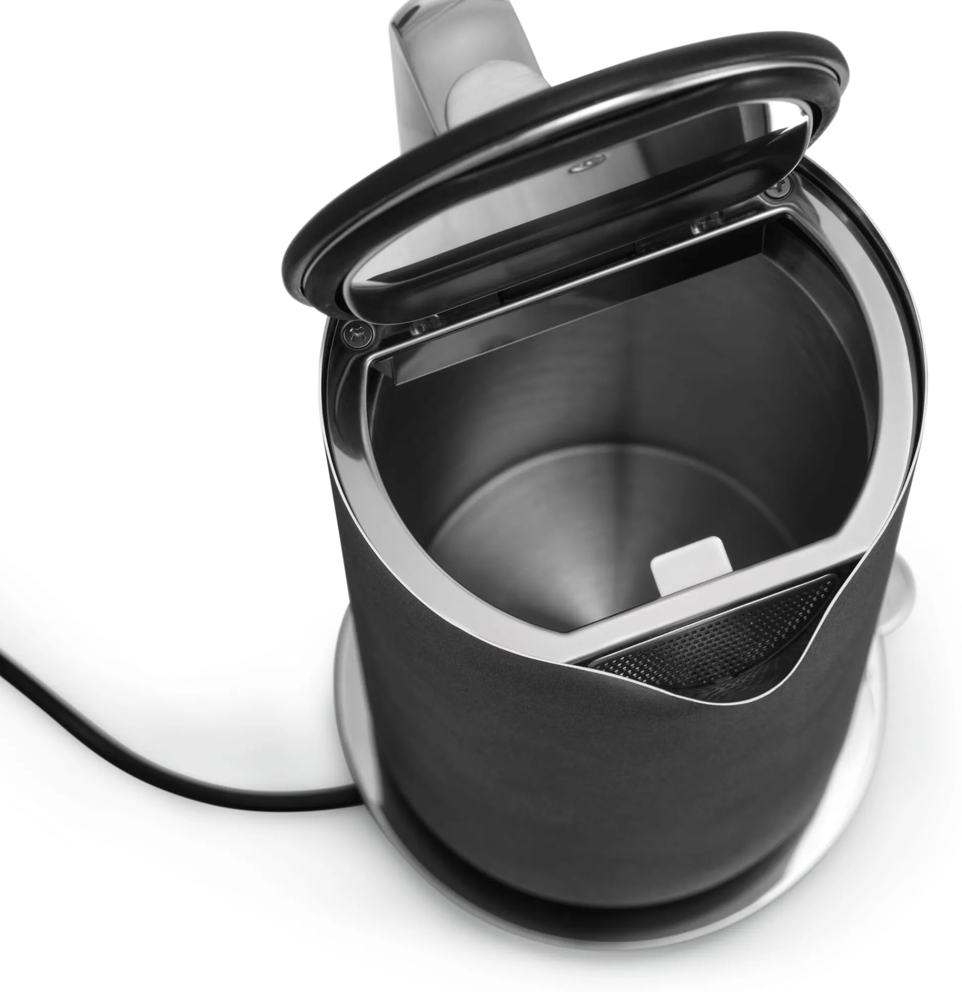 Warm, wärmer, heiß: Dieser formschöne Wasserkocher aus Edelstahl ermöglicht nicht nur eine gradgenaue Einstellung der gewünschten Zieltemperatur auf wahlweise 40 °C, 75 °C, 85 °C, 95 °C oder 100 °C – dank seines doppelwandigen Aufbaus und der Gummidichtung im Deckel erhitzt er bis zu 1,2 Liter Wasser auch geräuscharm und hält die Temperatur danach besonders lang. So kommt mit KETTLE das heiße Wasser einfach mit auf den Tisch und ist hier immer griffbereit.