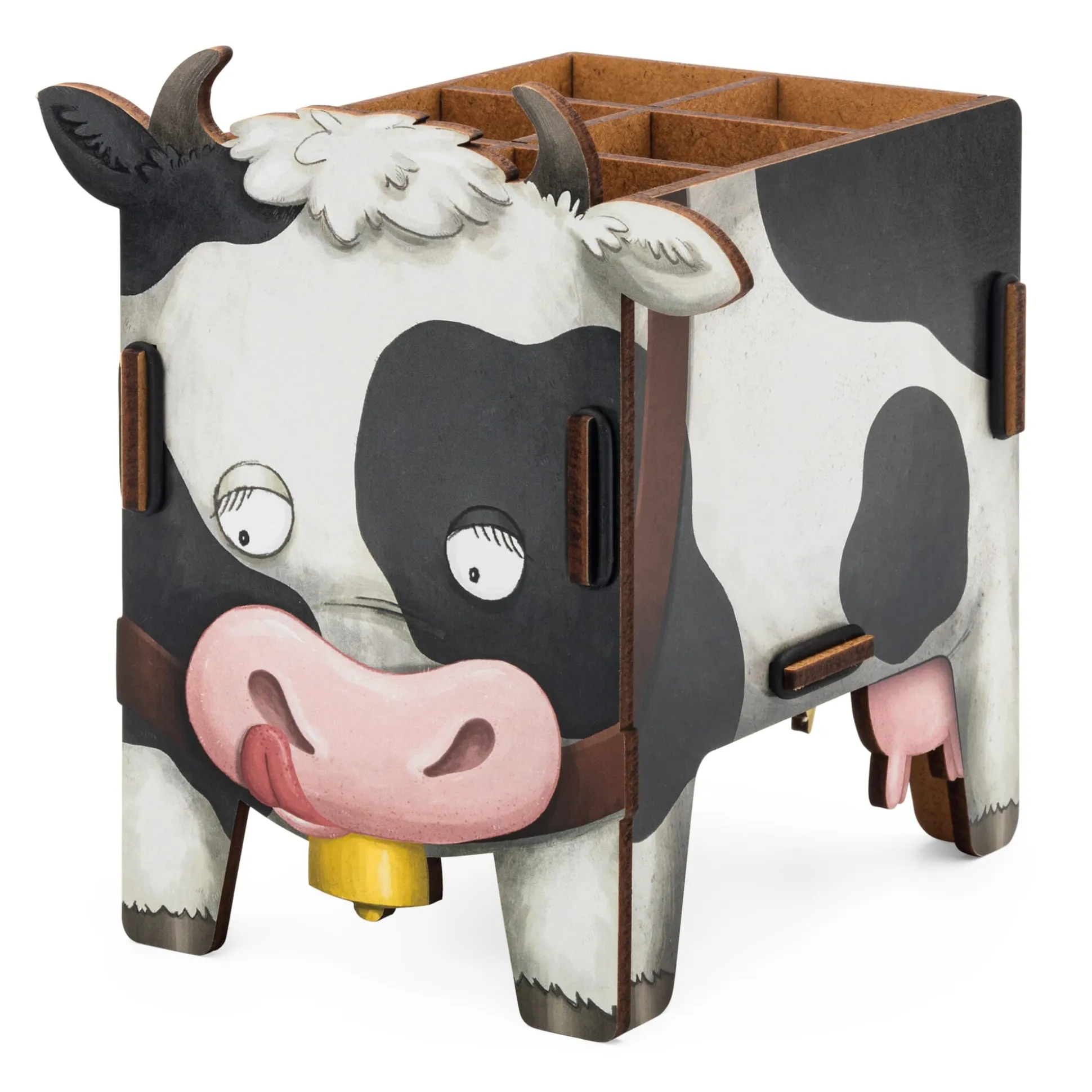 Kleiner als die Truhenhocker gleicher Gestaltung, aber deshalb nicht weniger praktisch: Die Stifteboxen von Werkhaus – als Tier oder in Form eines legendären Fahrzeugmodells. Neben Stiften und Büroutensilien findet hier auch allerhand anderer Kleinkram (wie etwa Werkzeug) Platz.