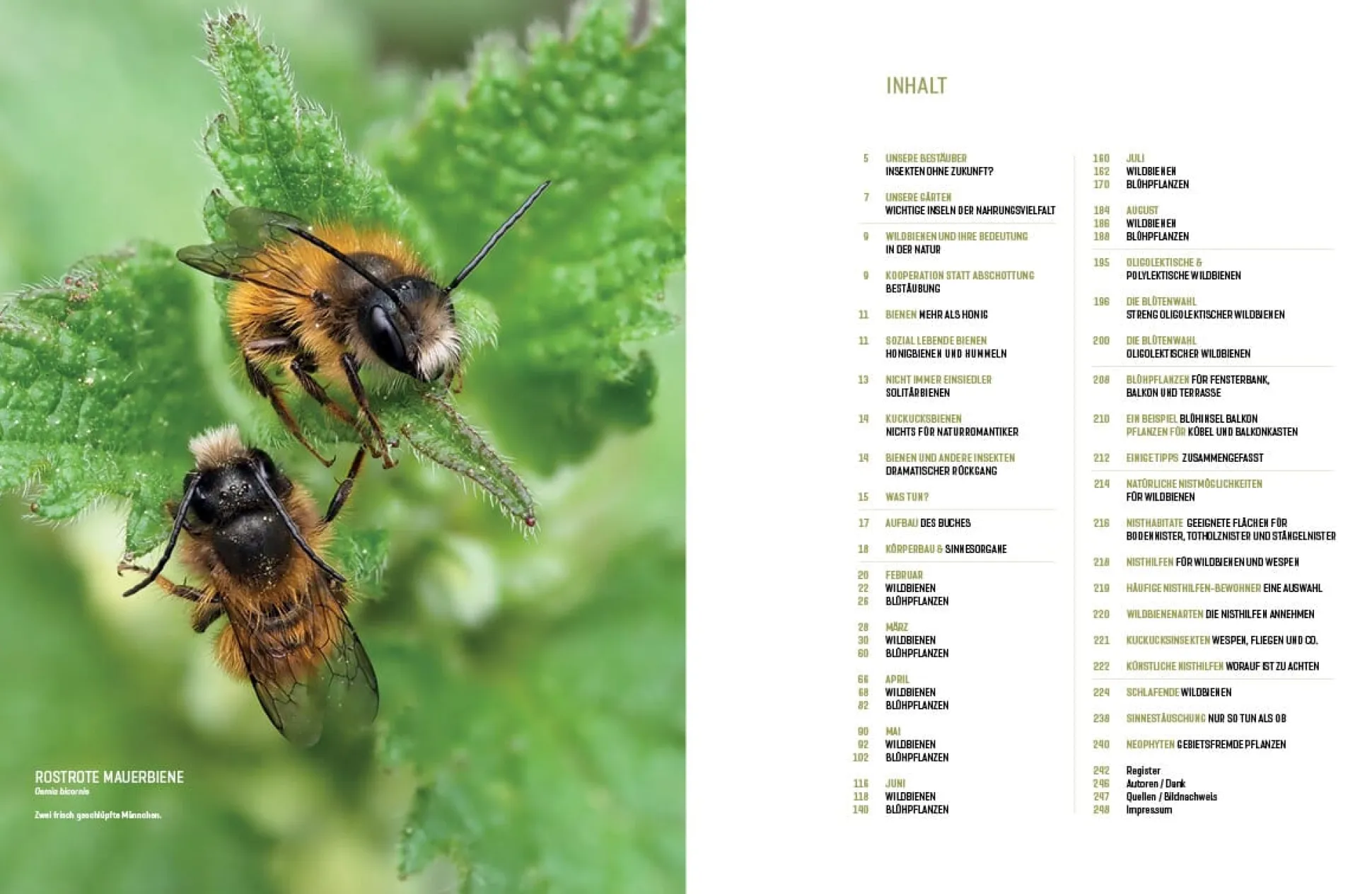 Was sind Wildbienen und welche Pflanzen und Lebensräume brauchen sie? Nach Monaten gegliedert, führt dieses Buch durch die Wildbienensaison und schärft den Blick auf die teilweise recht unscheinbaren Arten sowie auf heimische Blühpflanzen.
