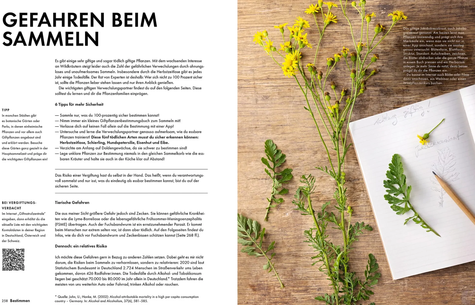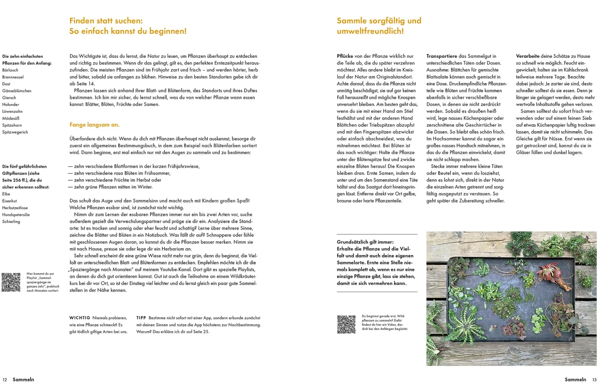 Einsteigern empfiehlt sie, sich erst einmal mit ein paar wenigen Kräutern zu beschäftigen und nach und nach das eigene Wissen zu erweitern. Ein praktisches Extra für unterwegs: Alle Pflanzenporträts kann man auch als PDF downloaden und sich handliche Bestimmungskarten für die Jackentasche ausdrucken. Wer mit diesem Buch Spaß am Sammeln gefunden hat, kann auf dem Youtube-Kanal der Autorin noch mehr zu essbaren Wildpflanzen, Rezepten und Standorten entdecken. QR-Codes weisen auf vielen Seiten den Weg zu passenden Videos.
