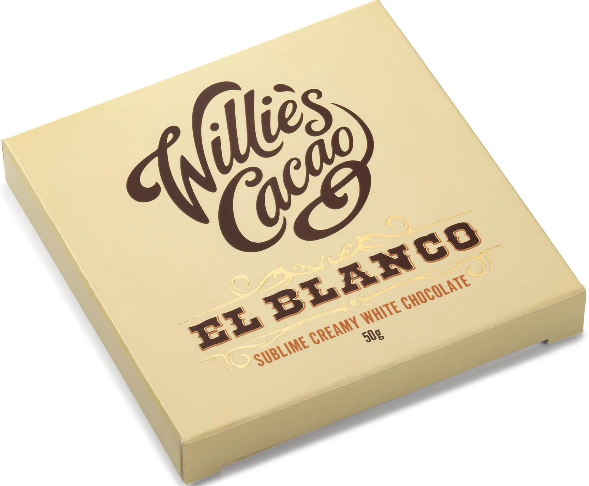 Eine weiße Schokolade wie diese ist selten. Sie besteht nur aus Kakaobutter, rohem Rohrzucker und Milch – auf den sonst oft üblichen Zusatz von Vanille verzichtet Willie Harcourt-Cooze ganz bewusst. Die wunderbar cremige, milde und nicht zu süße Schokolade benötigt ihn auch nicht: Sie ist schon von sich aus aromatisch und ein echter Hochgenuss.